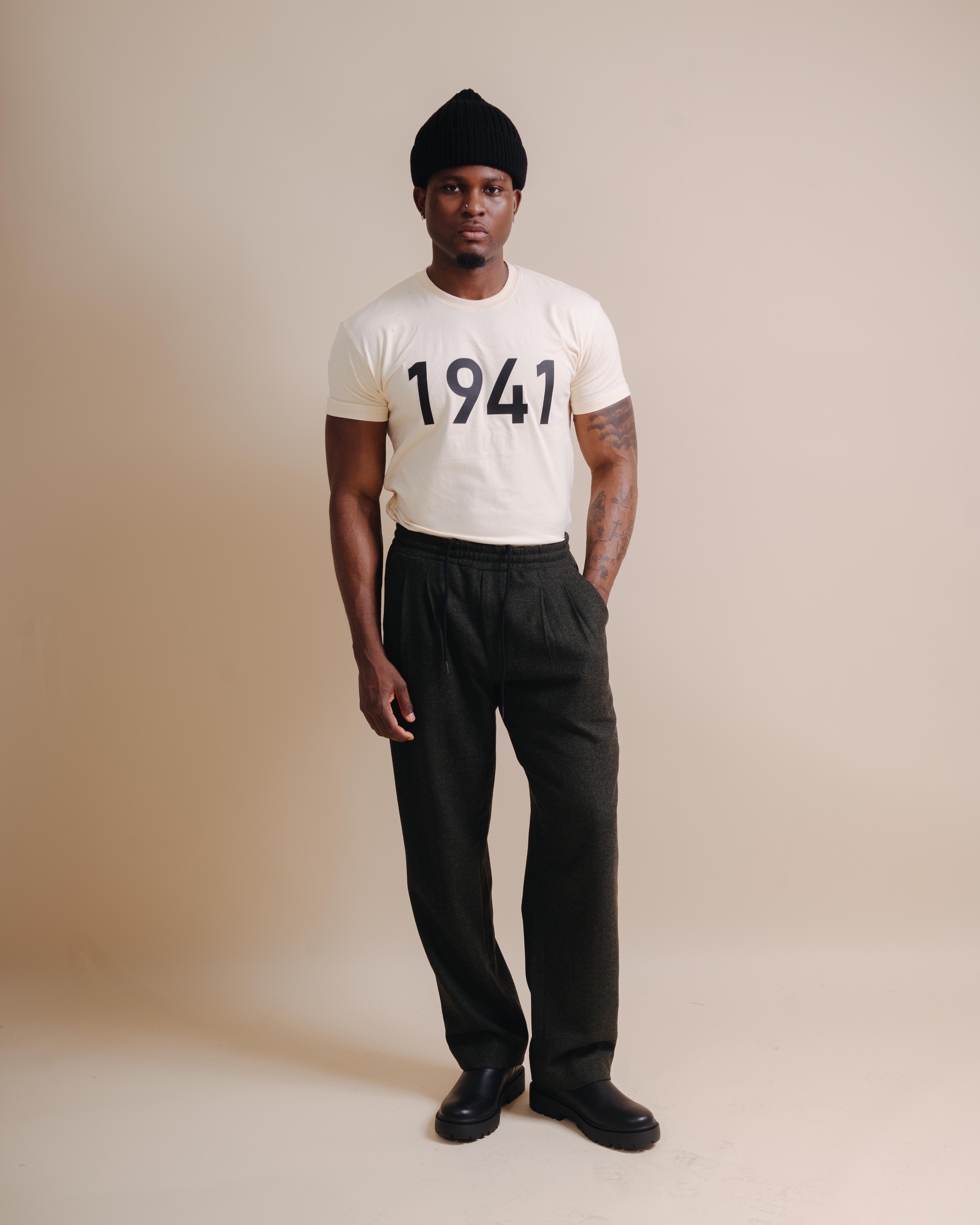 Step into history with our exclusive 240-gram cotton t-shirt featuring a bold and distinguished "1941" embossed design in striking black. Embody the essence of that significant year with a garment that seamlessly merges classic style and contemporary comfort. Elevate your wardrobe with this unique piece, capturing the spirit of a bygone era in every detail.