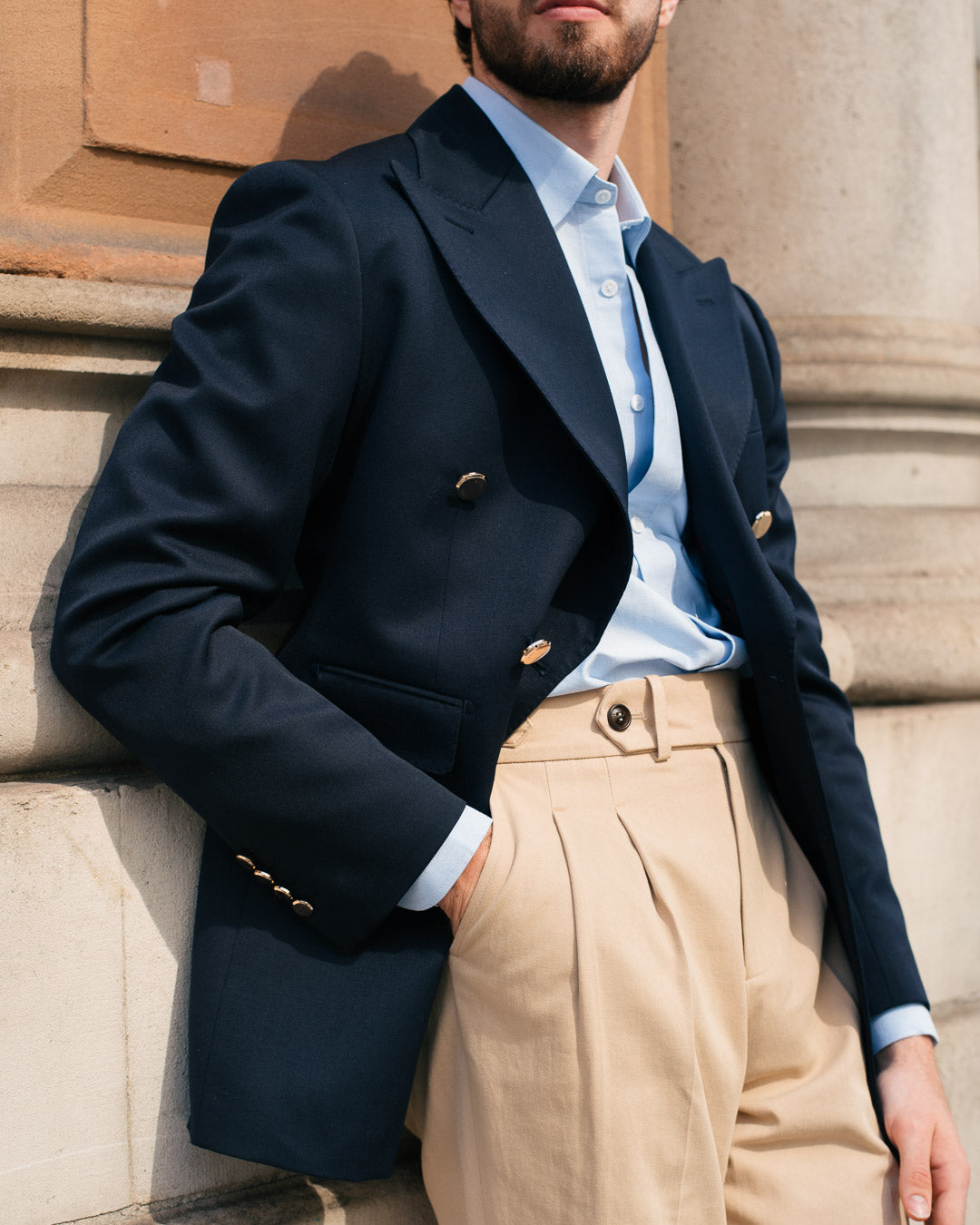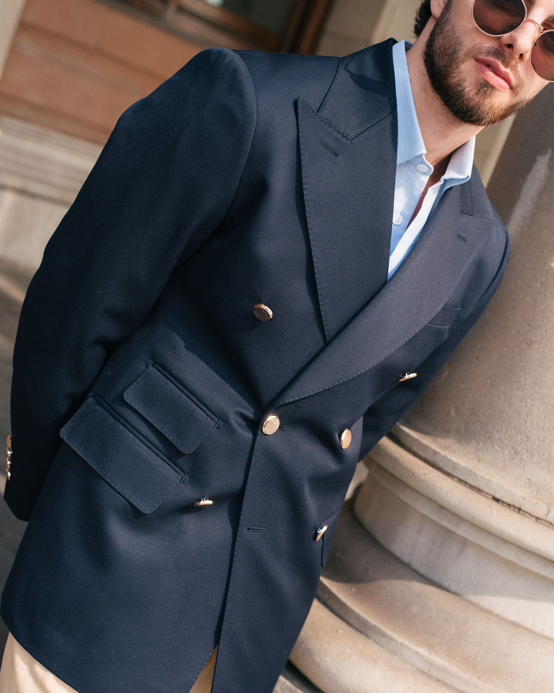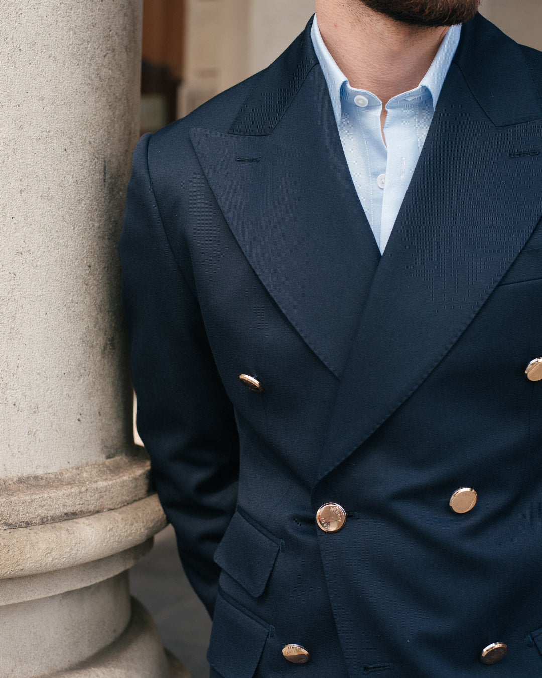 The Academy Blazer is a quintessential preppy jacket. The Academy Blazer is cut from a medium weight navy pure wool fabric. A navy gold button jacket will always be useful in the modern mans wardrobe, when designing this piece we drew inspiration from the IV League preppy look. Our Academy Blazer is very versatile and whether its worn for a formal or casual settings it will certainly turn heads.
