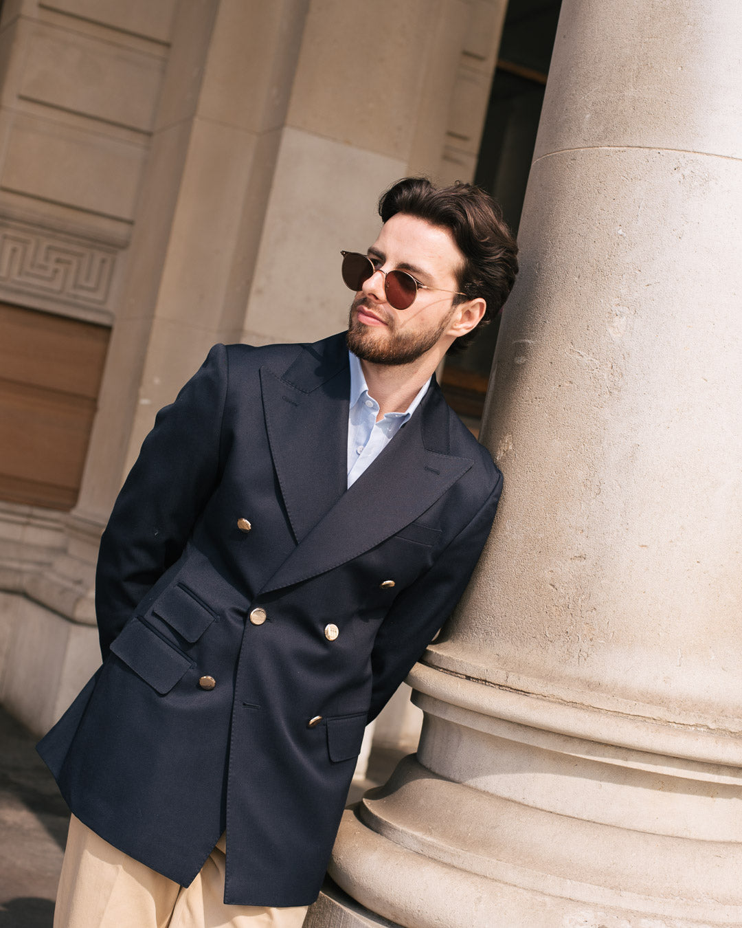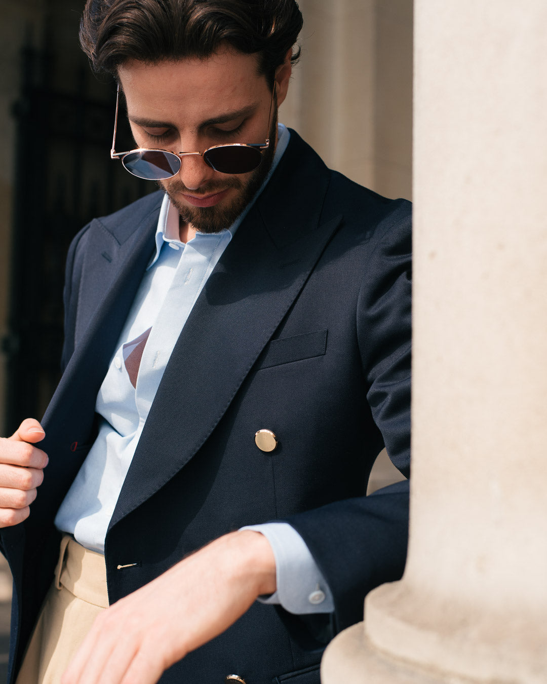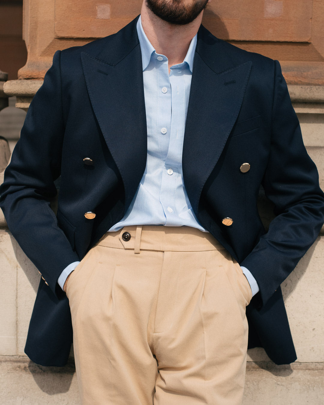 The Academy Blazer is a quintessential preppy jacket. The Academy Blazer is cut from a medium weight navy pure wool fabric. A navy gold button jacket will always be useful in the modern mans wardrobe, when designing this piece we drew inspiration from the IV League preppy look. Our Academy Blazer is very versatile and whether its worn for a formal or casual settings it will certainly turn heads.