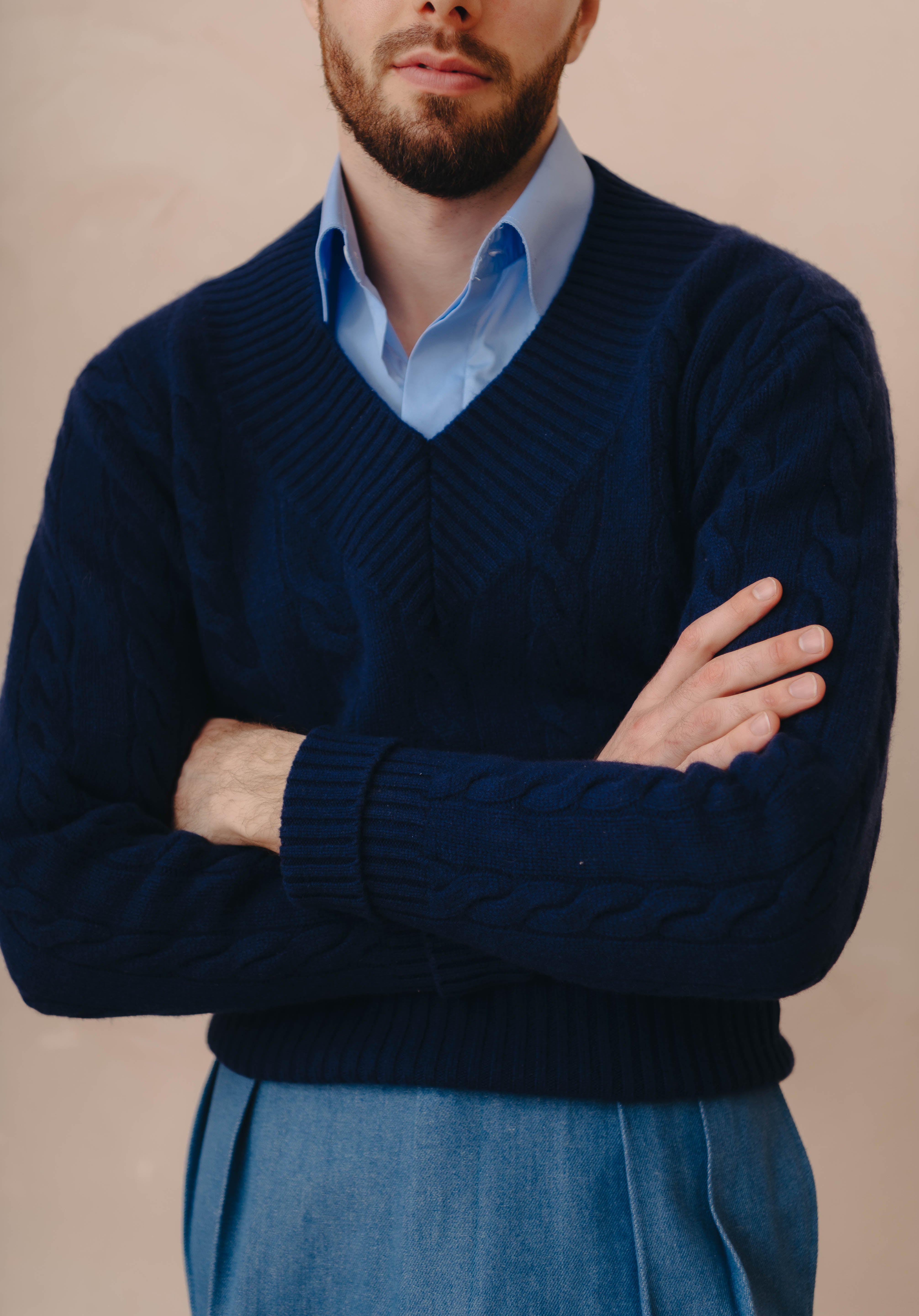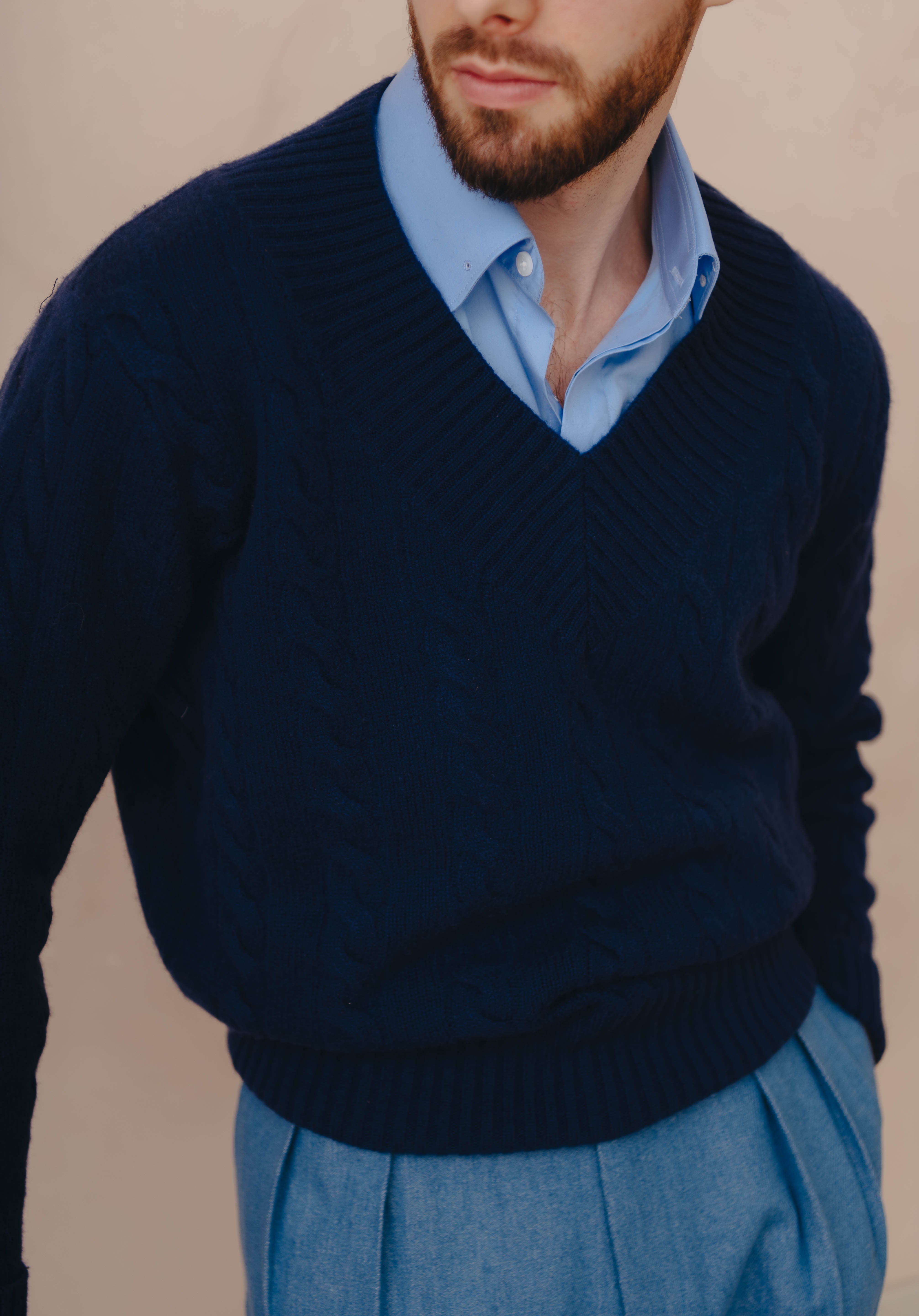 Inspired by the traditional Tennis sweater used by Tennis players this Albert Tennis sweater is the perfect statement piece for any outing. Made from 100% Merino Wool Yarn this sweater is an essential piece in a classic mans wardrobe. The Tennis Sweater can be worn alone or can be matched with a well tailored shirt to achieve an amazing "preppy" look.