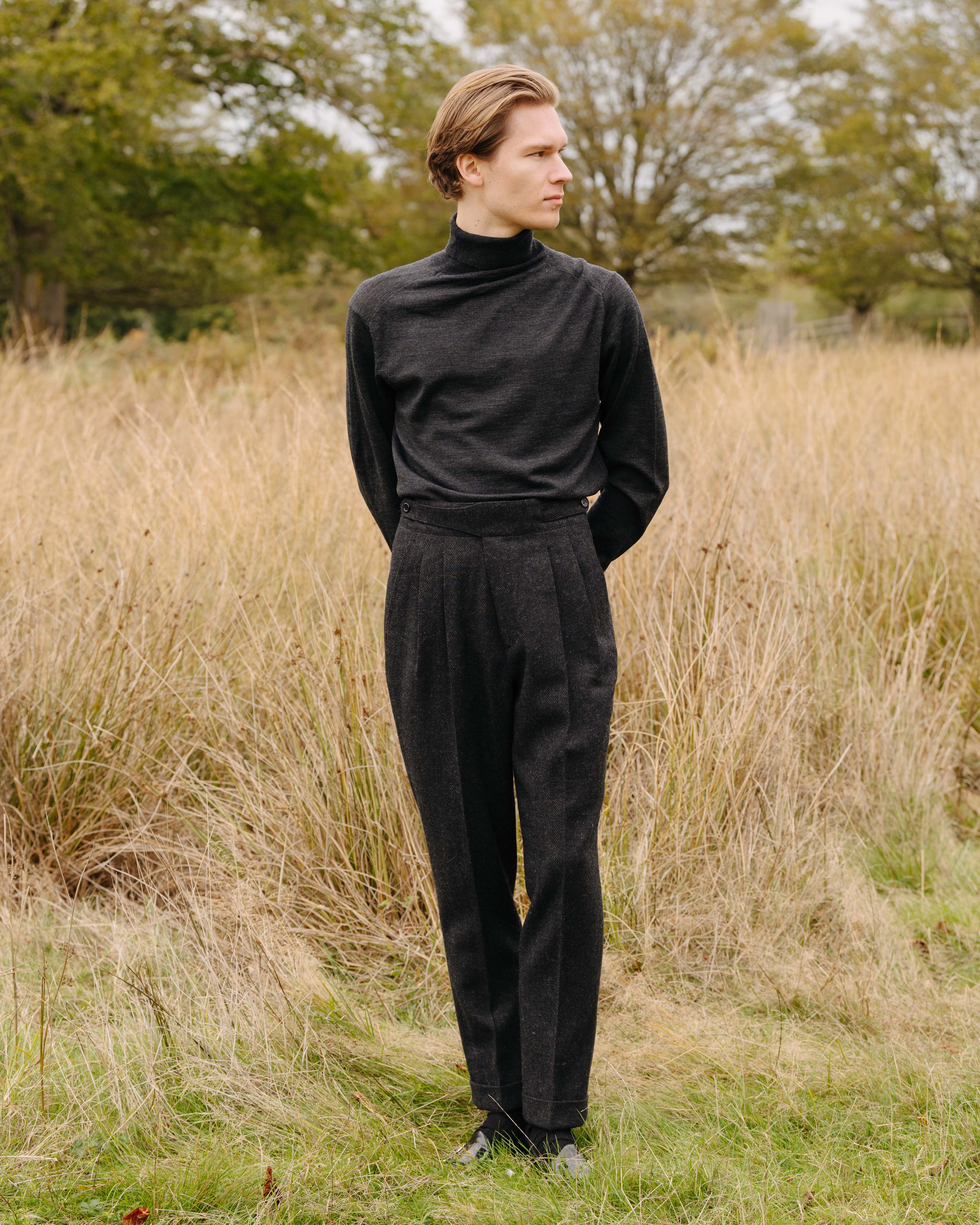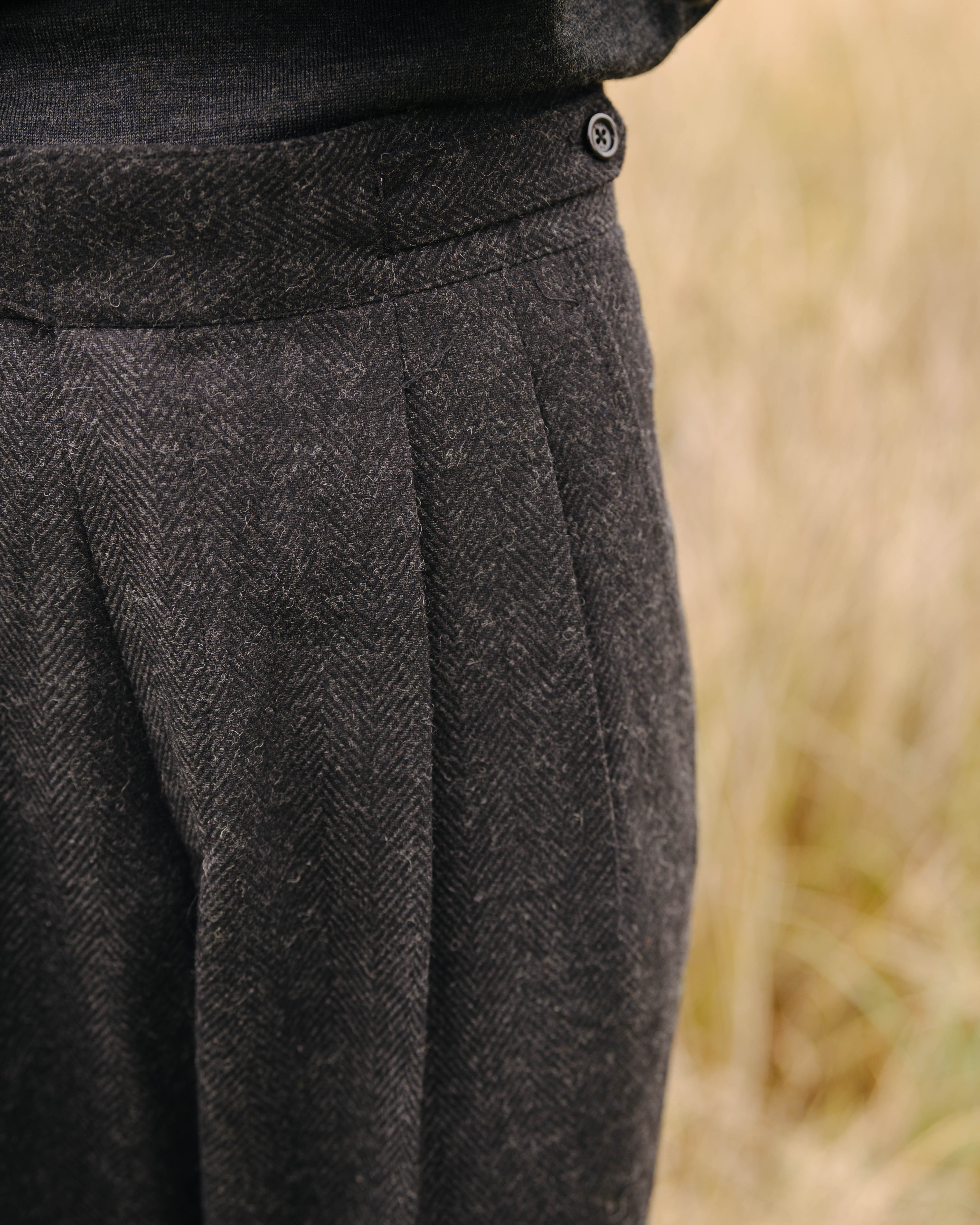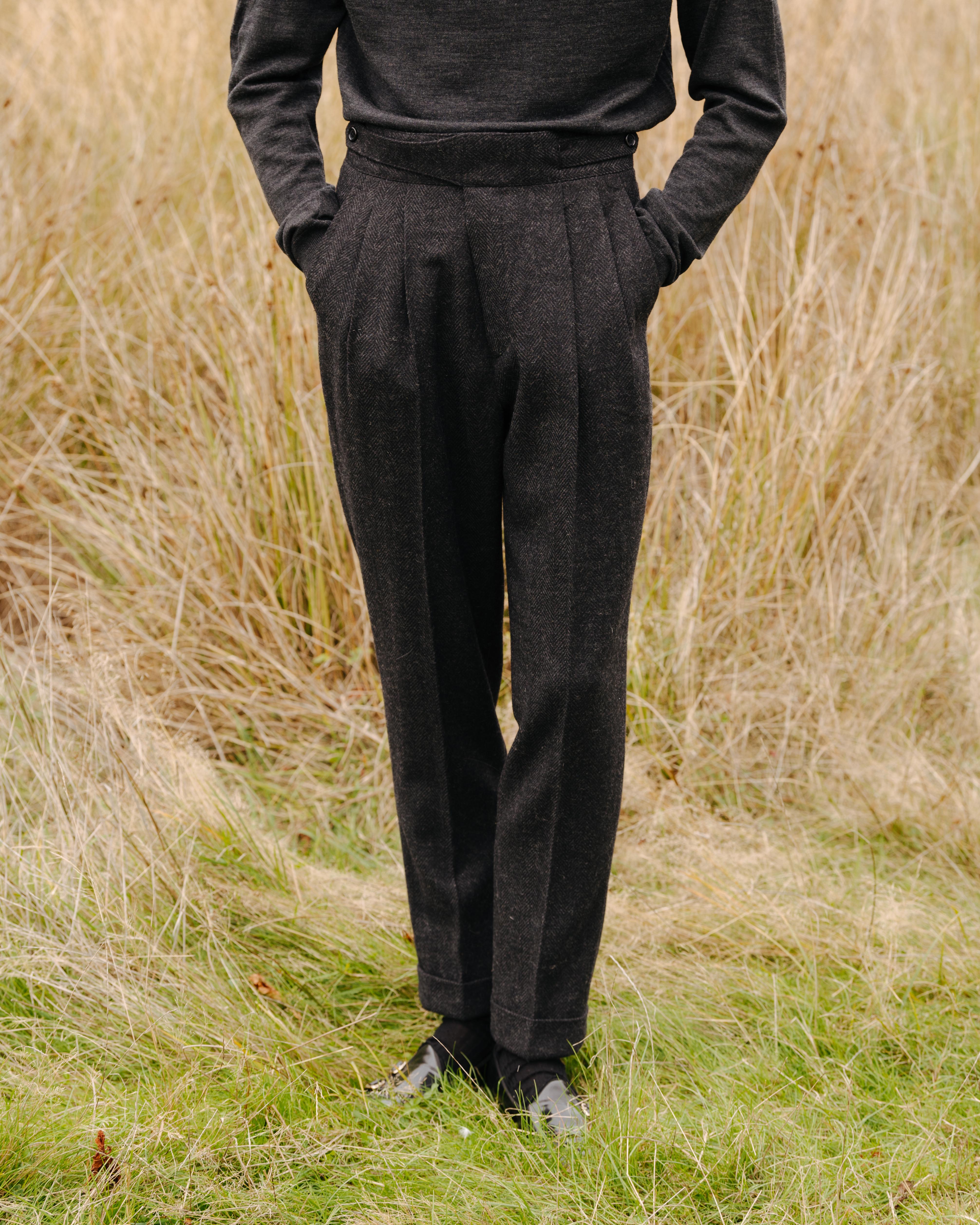 Our Belfast Gurkha Pants are an essential for any fashion forward mans wardrobe. Made from a charcoal herringbone tweed cloth these pants give you the best of both worlds of street style & sartorial. Can be dressed up with a well tailored blazer & shirt or dressed down with a turtleneck/sweater, perfect for cooler temperatures.