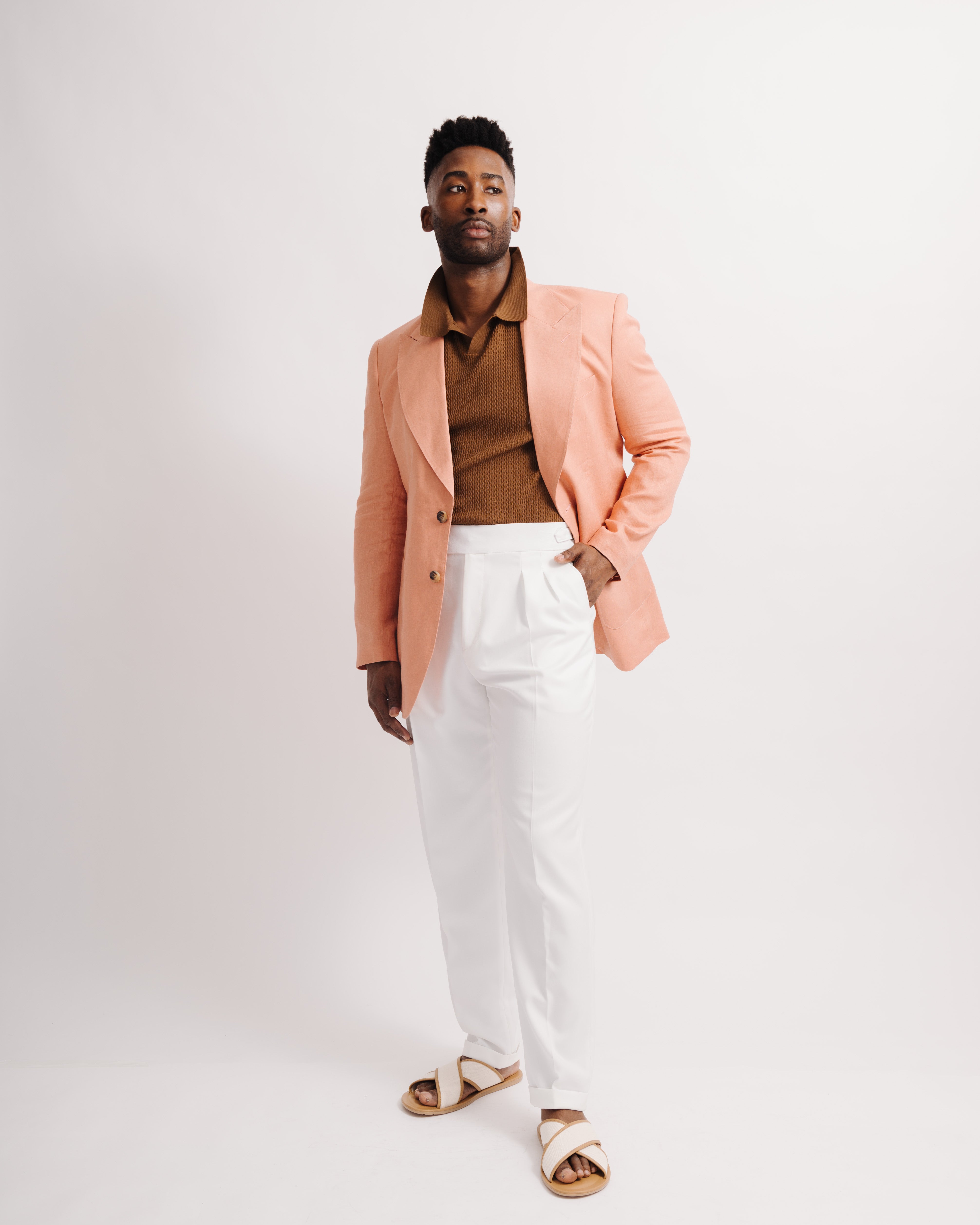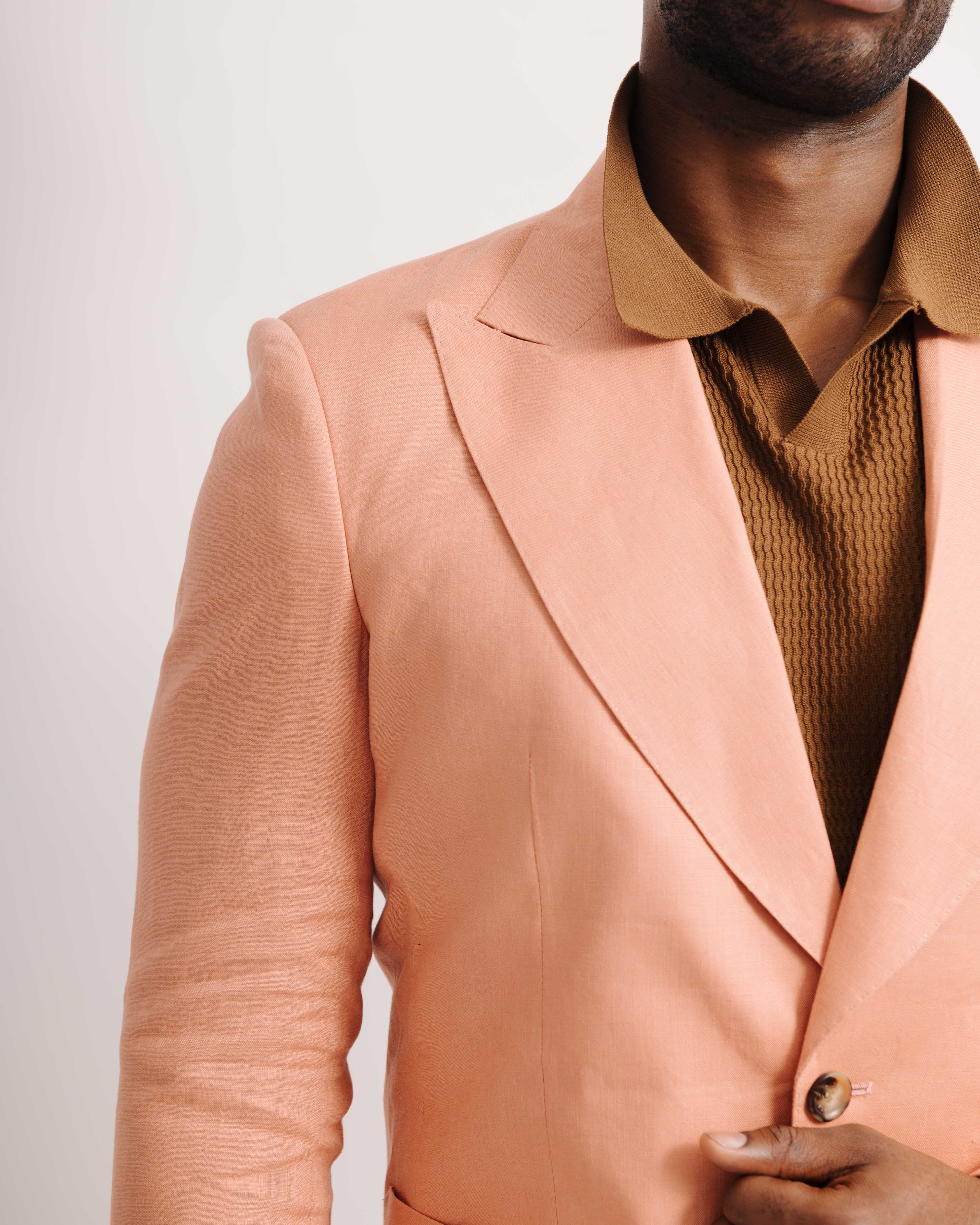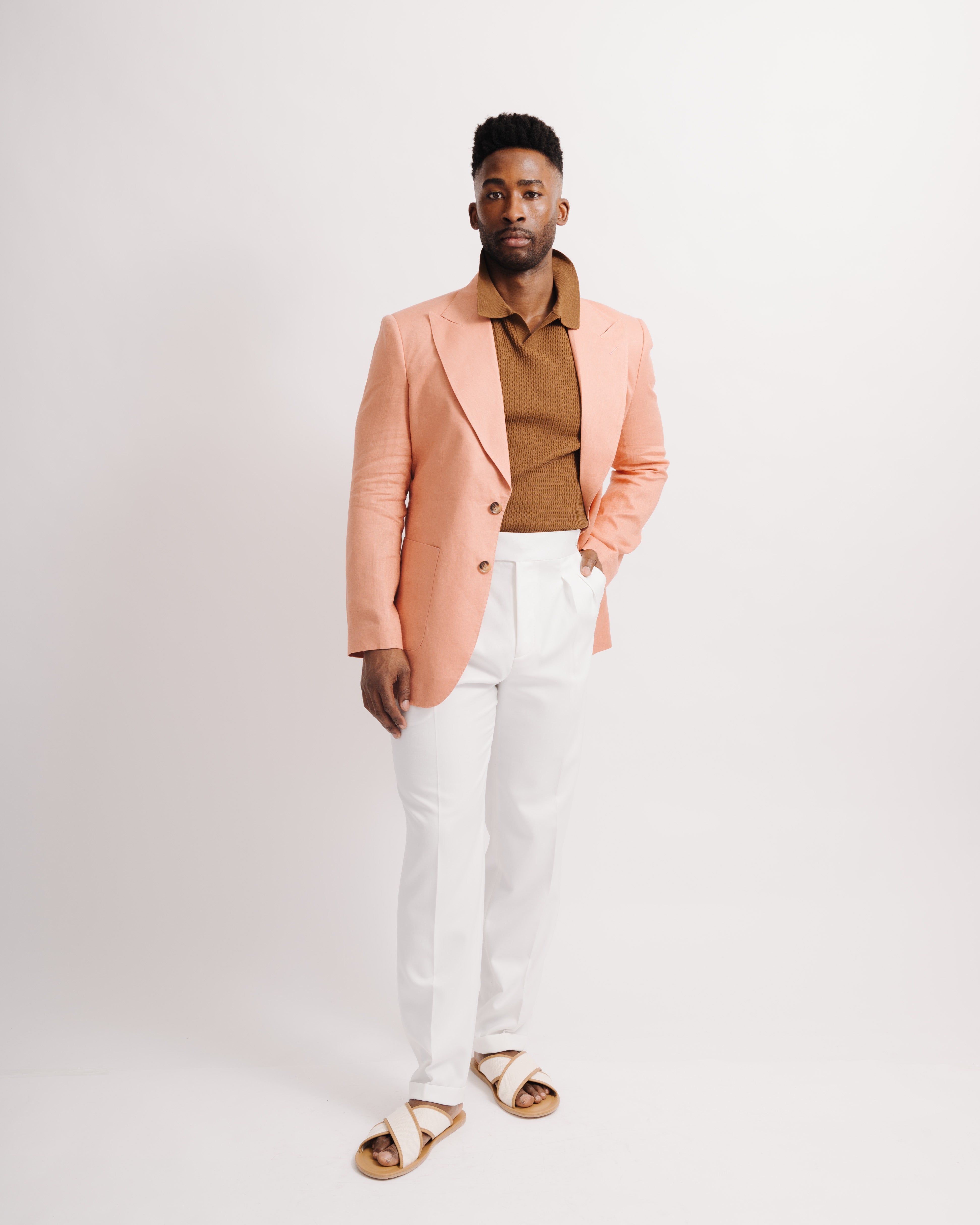 The Portobello Blazer is a standout item made for the fashion forward man. This tailored blazer is highly inspired by 1970's tailoring with its wide lapels and structured silhouette. The Portobello Blazer is made from a splendid Ivory Irish linen cloth to execute a chic summer attire. Whether this blazer is worn for a formal or casual occasion it will certainly turn heads.