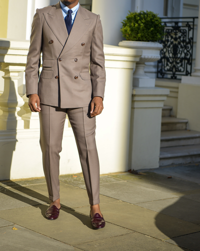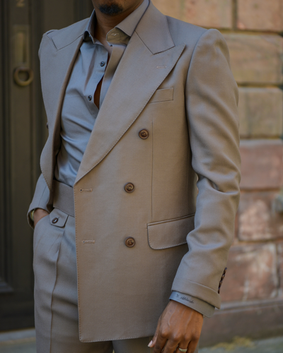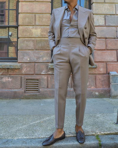 The Brescia suit is handmade using an amazing Pure Wool Cloth that will ensure you stand out from the crowd. This suit is a year around weight suitable for most temperatures. The double breasted jacket is paired with well tapered pleated high waisted trousers to give a very modern twist to a very classic style.