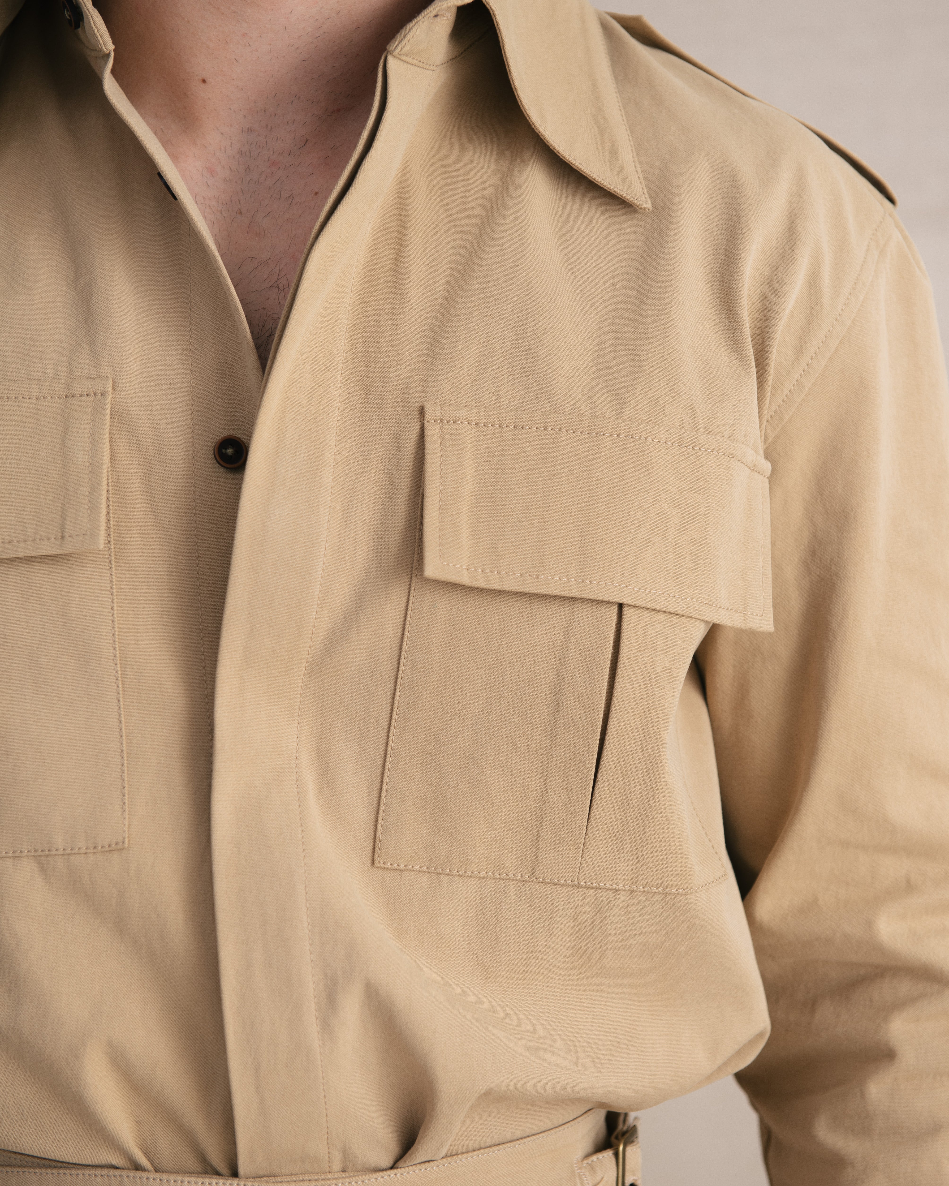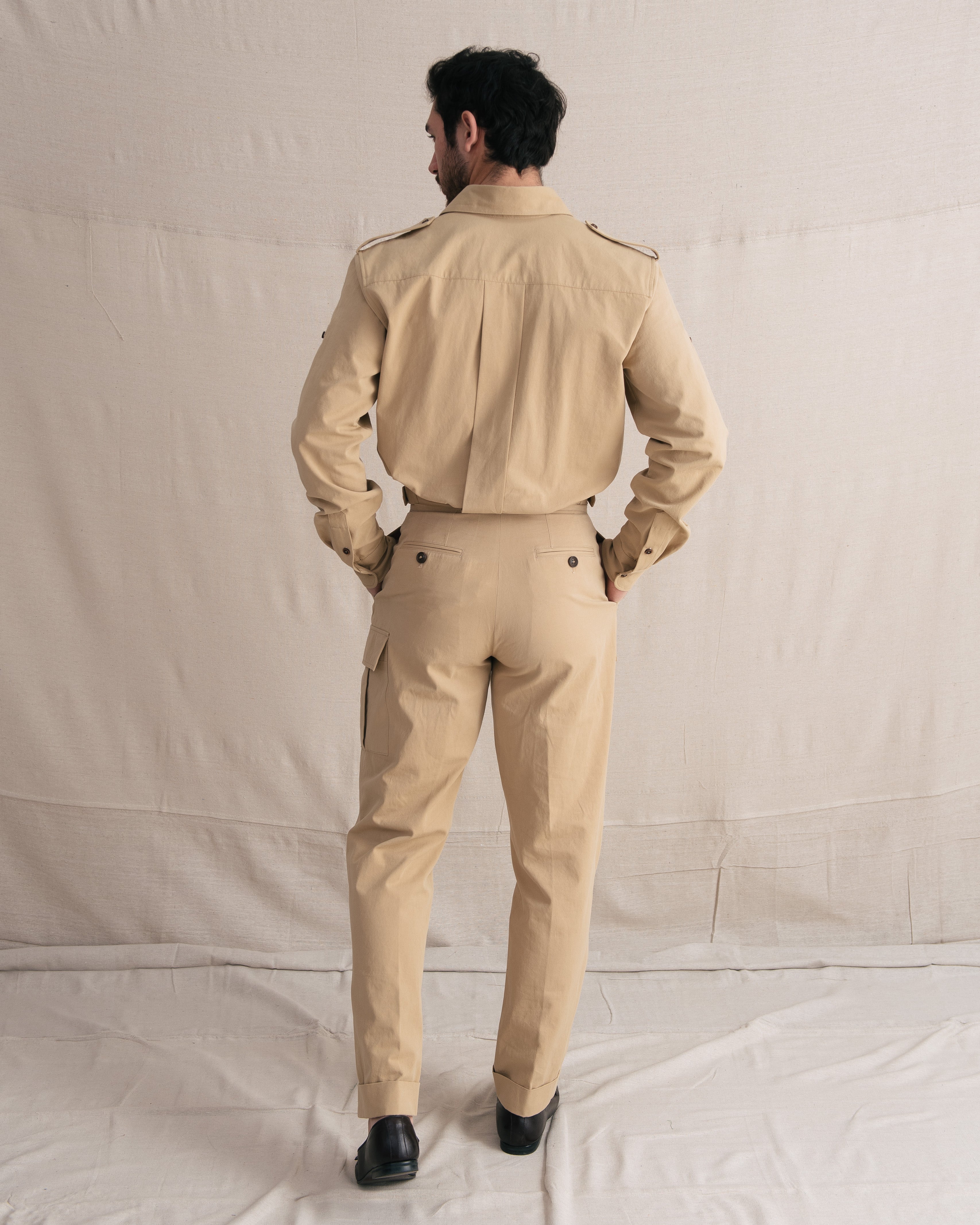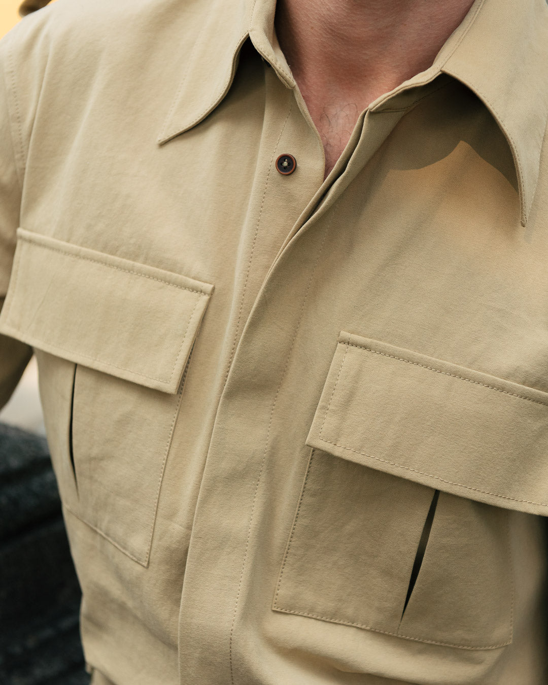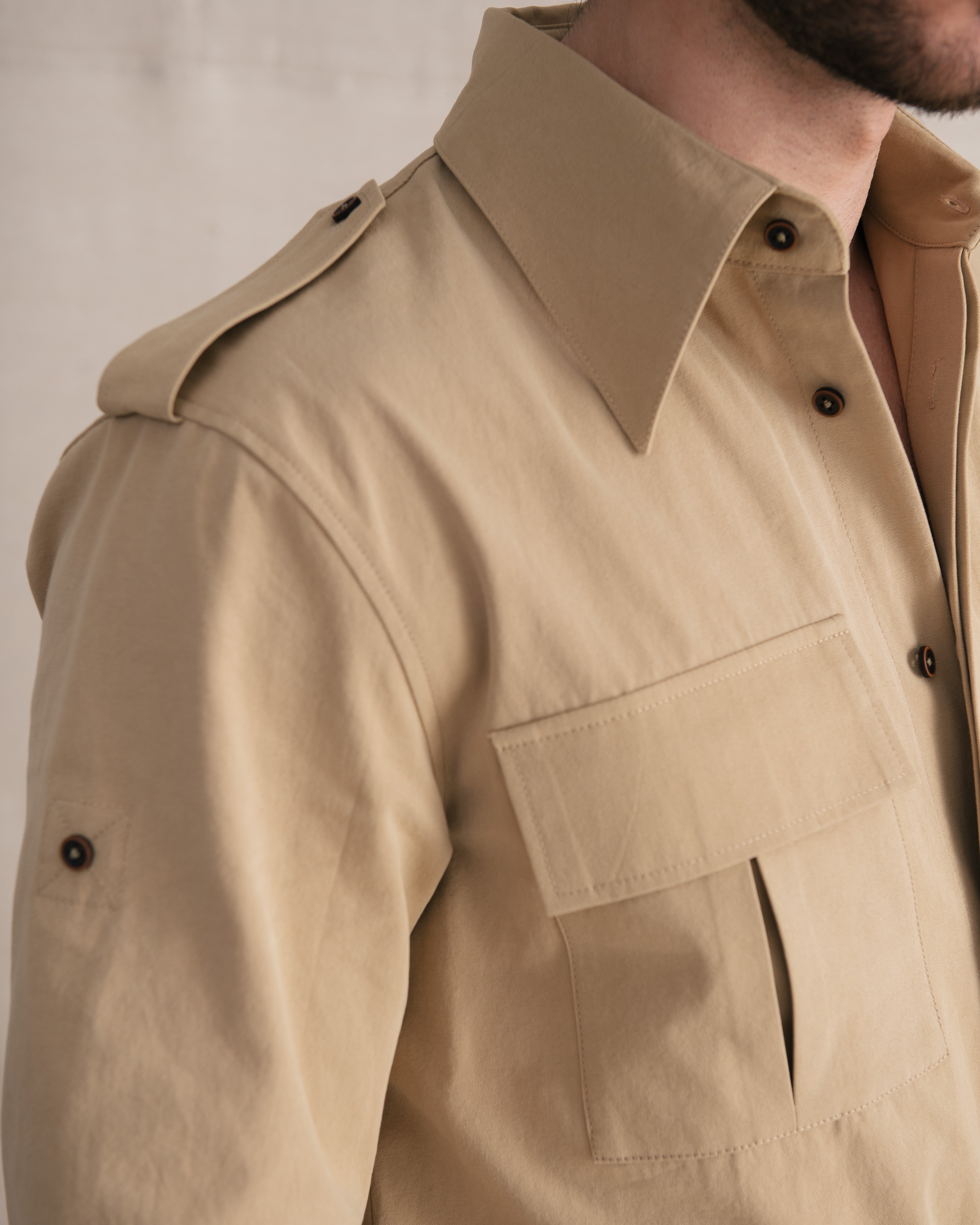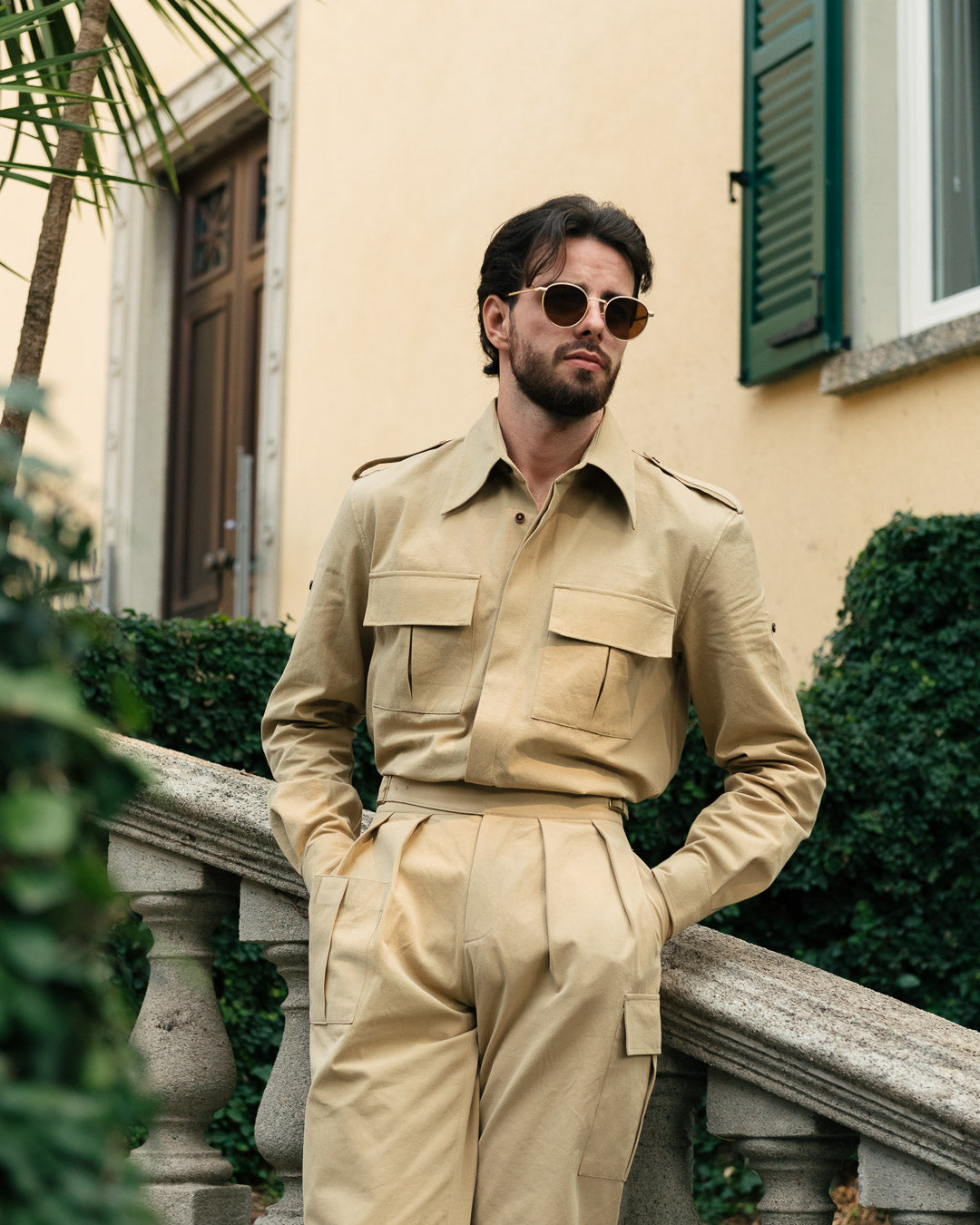The Ernesto Army Shirt draws inspiration from traditional military attire. Made from a beautiful cotton cloth this shirt is perfect for any casual spring/summer outing or vacation.