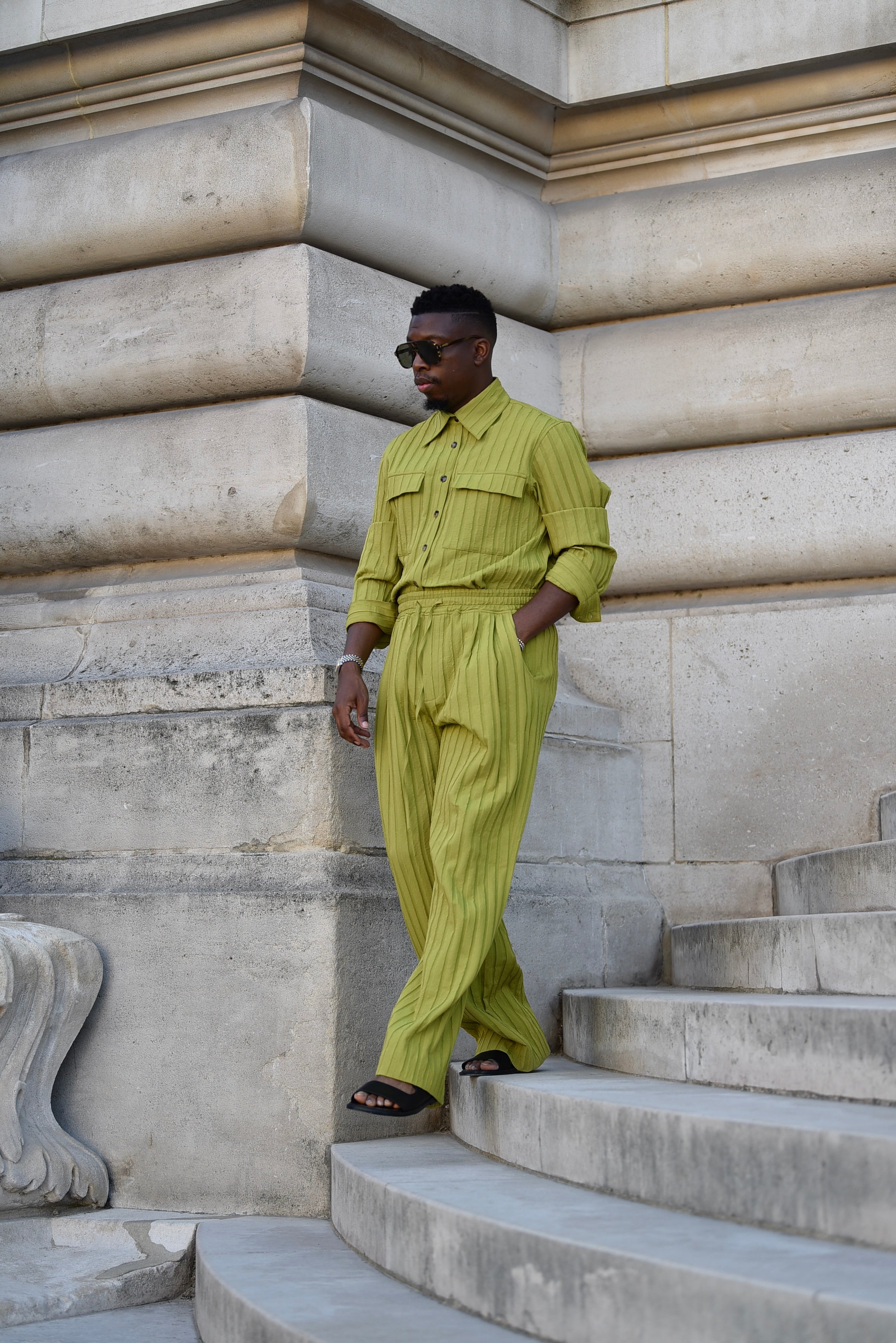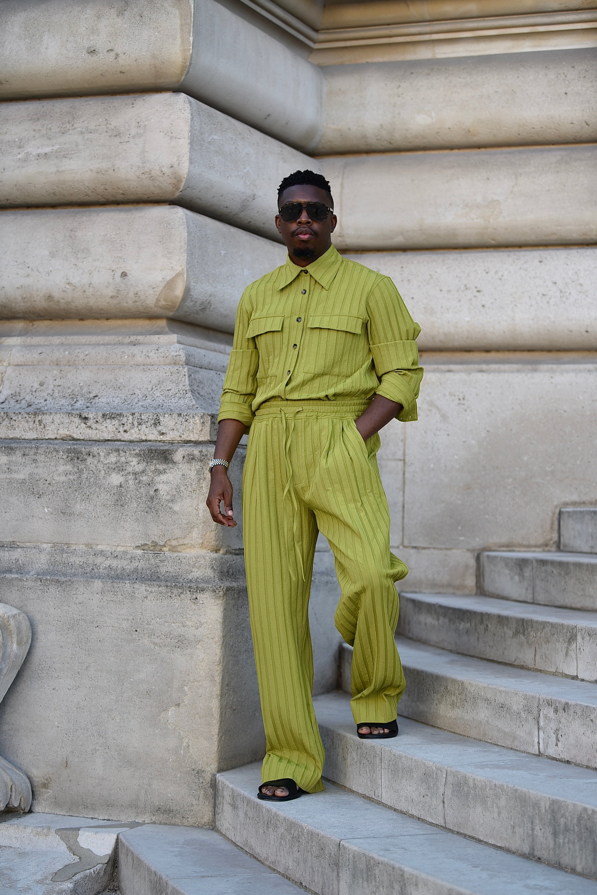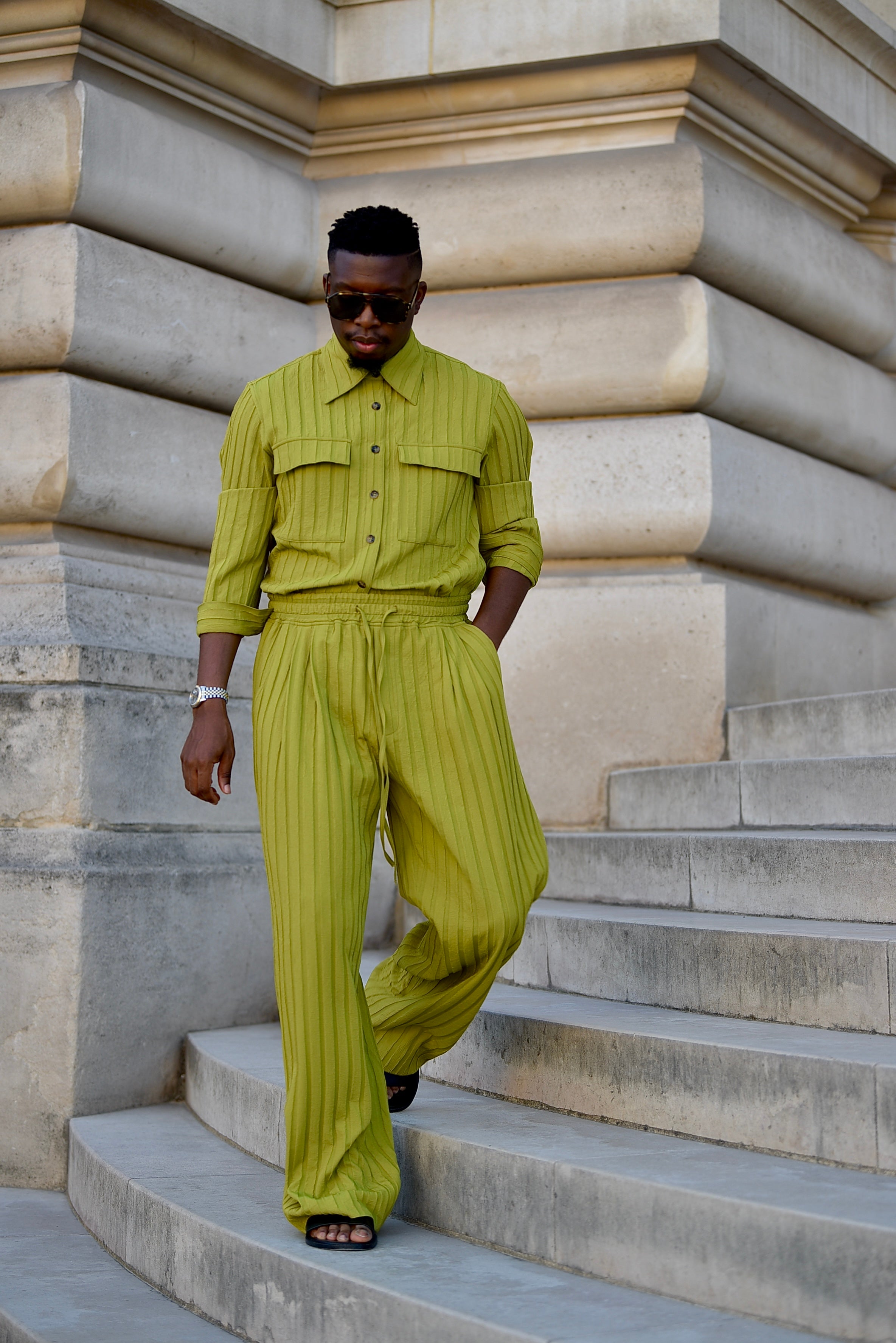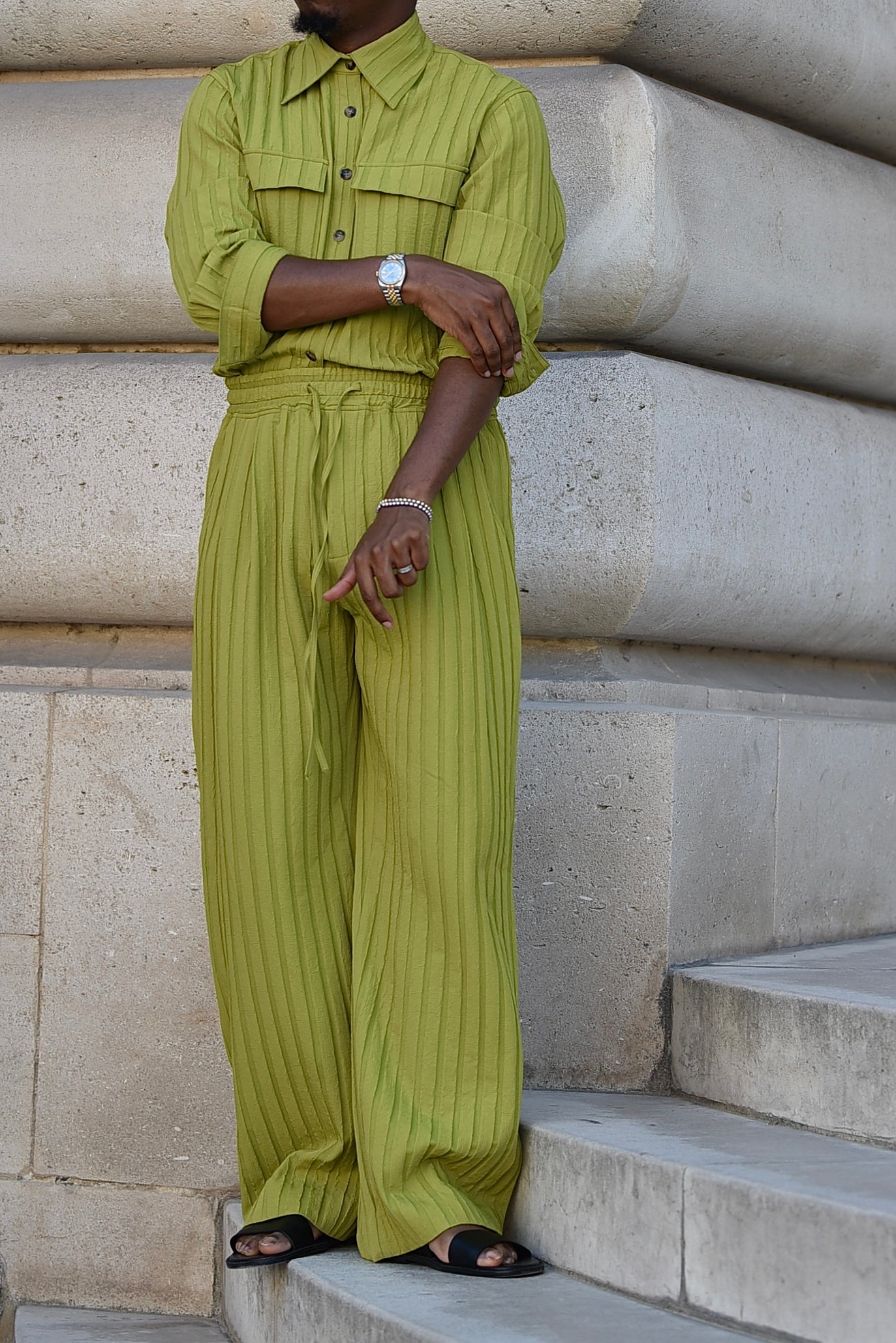 Domingo Pleated Drawstring Pants (Lime)