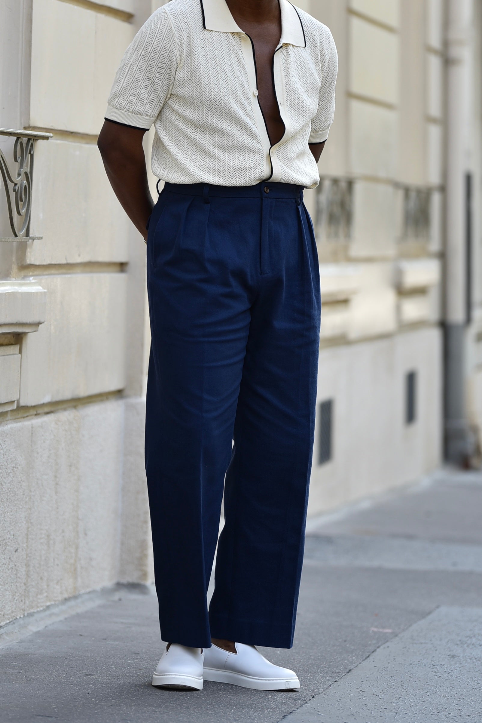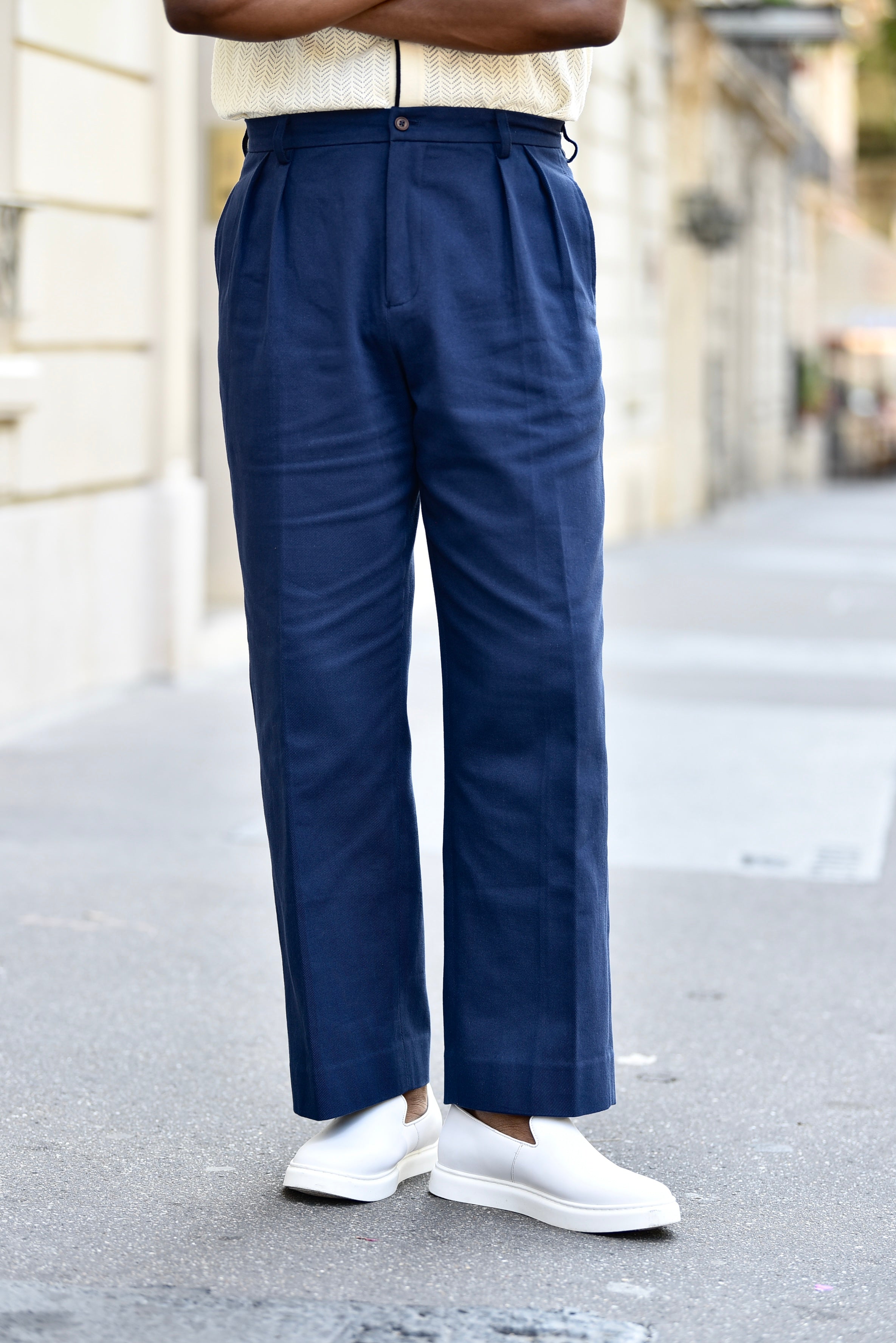 Crafted from 100% Japanese cotton twill, the Enson Pants are our modern take on the classic chino trouser. These high-waisted pants feature a wide leg fit and double pleats, offering both comfort and style. Perfect for dressing up or down, they can be paired with sneakers for a casual look or dressed up for a more polished appearance. The Enson Pants are a staple piece for the modern man's wardrobe
