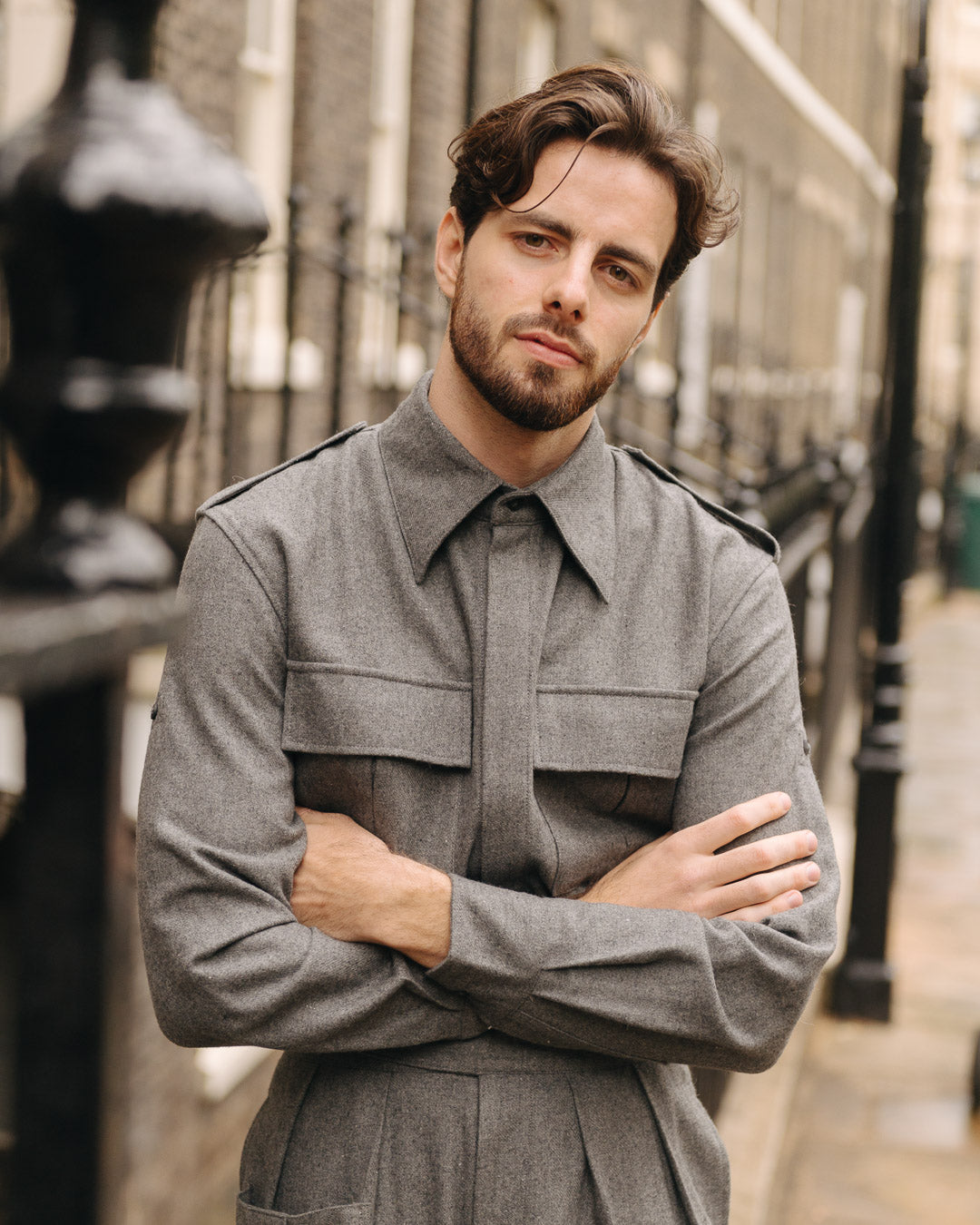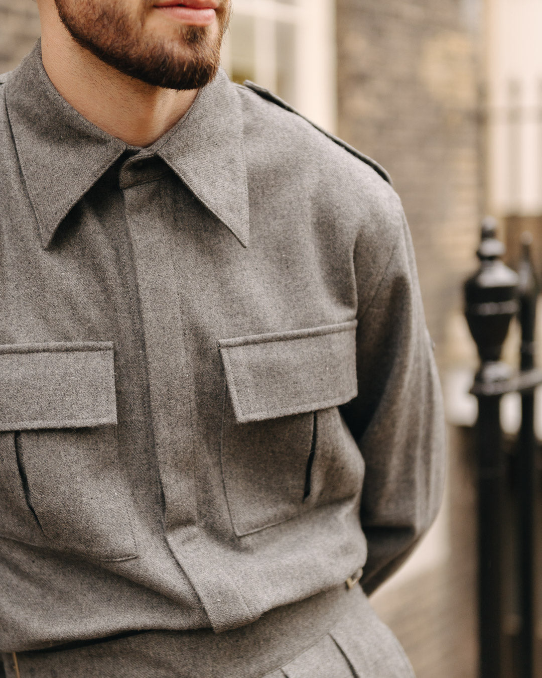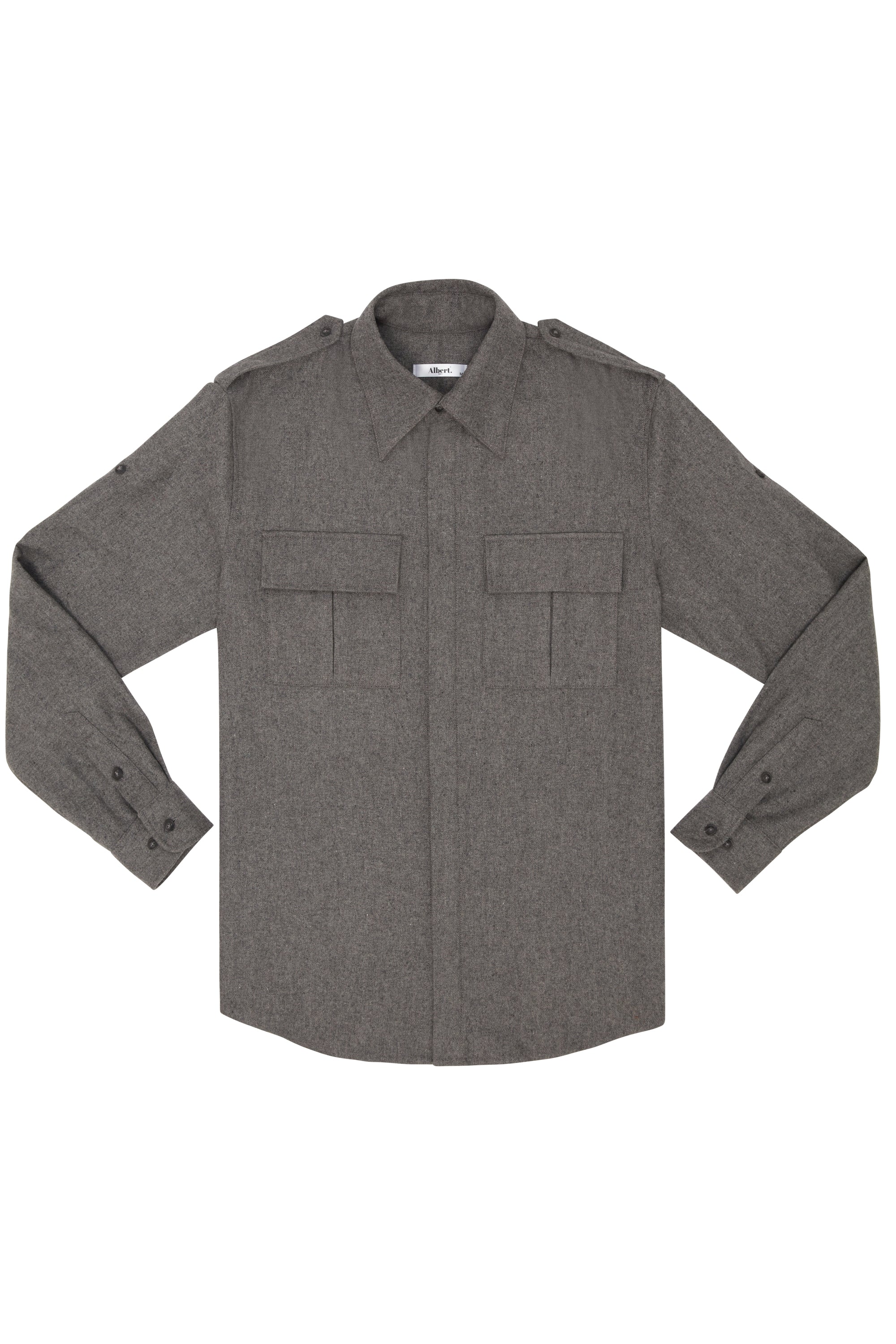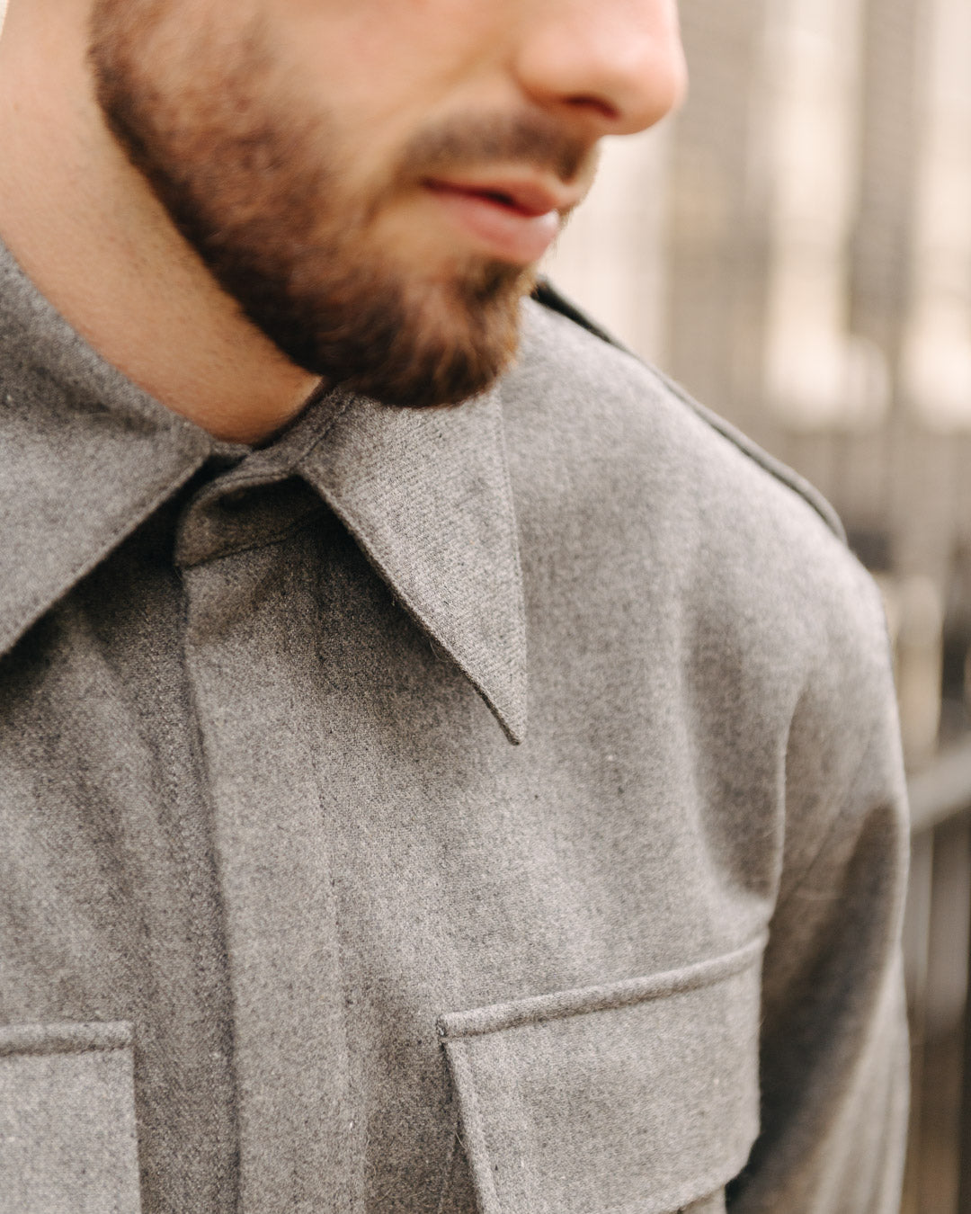 The Ernesto Army Shirt draws inspiration from traditional military attire. Made from a beautiful grey flannel wool cloth this shirt is perfect for any casual autumn/winter outings