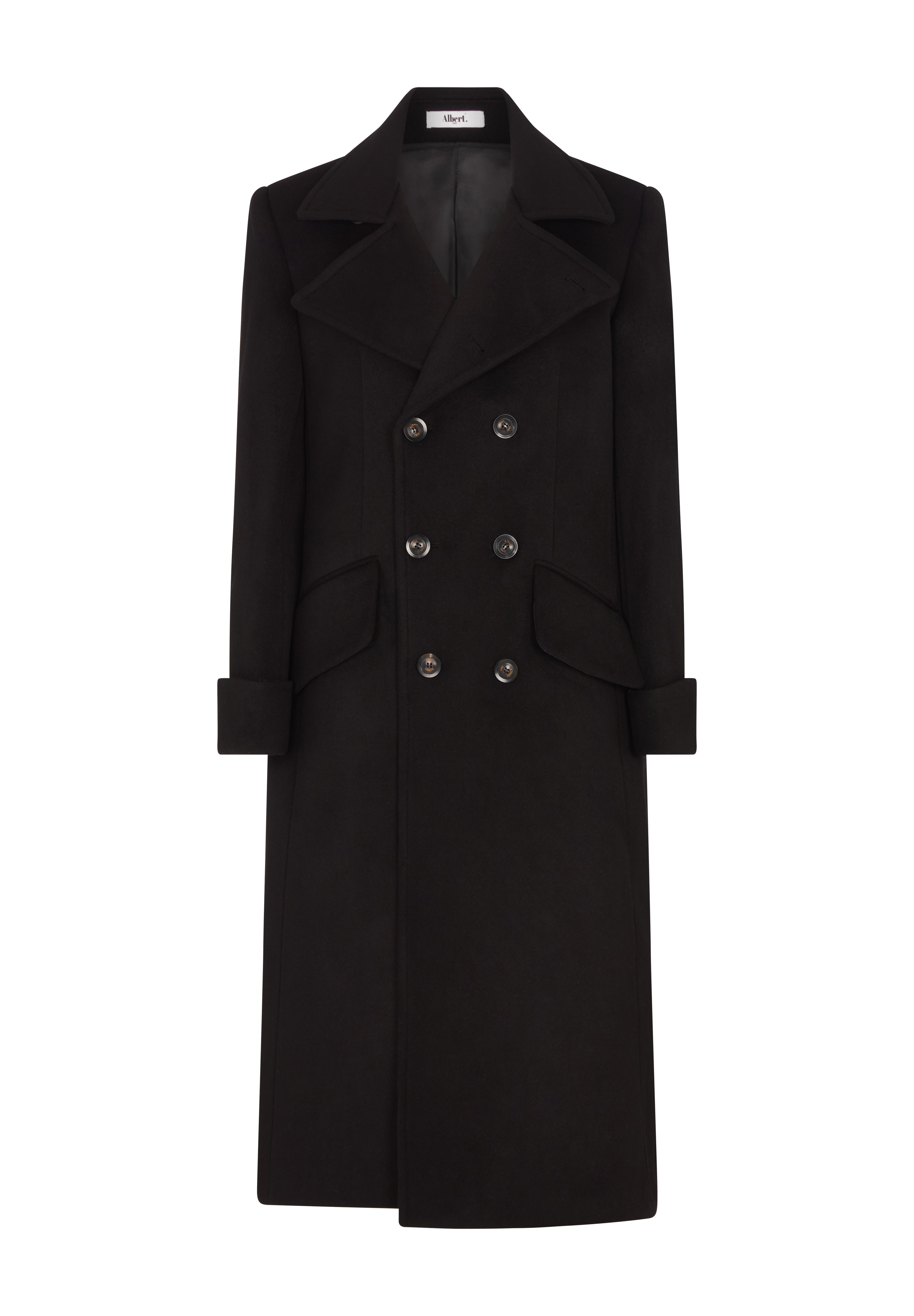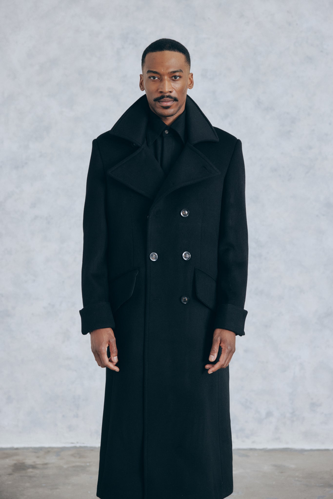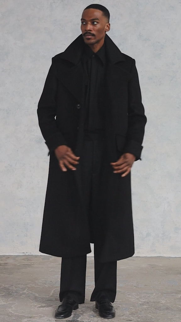 The Everest Greatcoat is a military inspired coat. Created in a thick heavy-duty Black 100% pure wool cloth this coat is packed with amazing details. Not only does it serve the purpose of keeping you warm it is a uniquely stylish winter coat and a great staple for the modern mans wardrobe.
