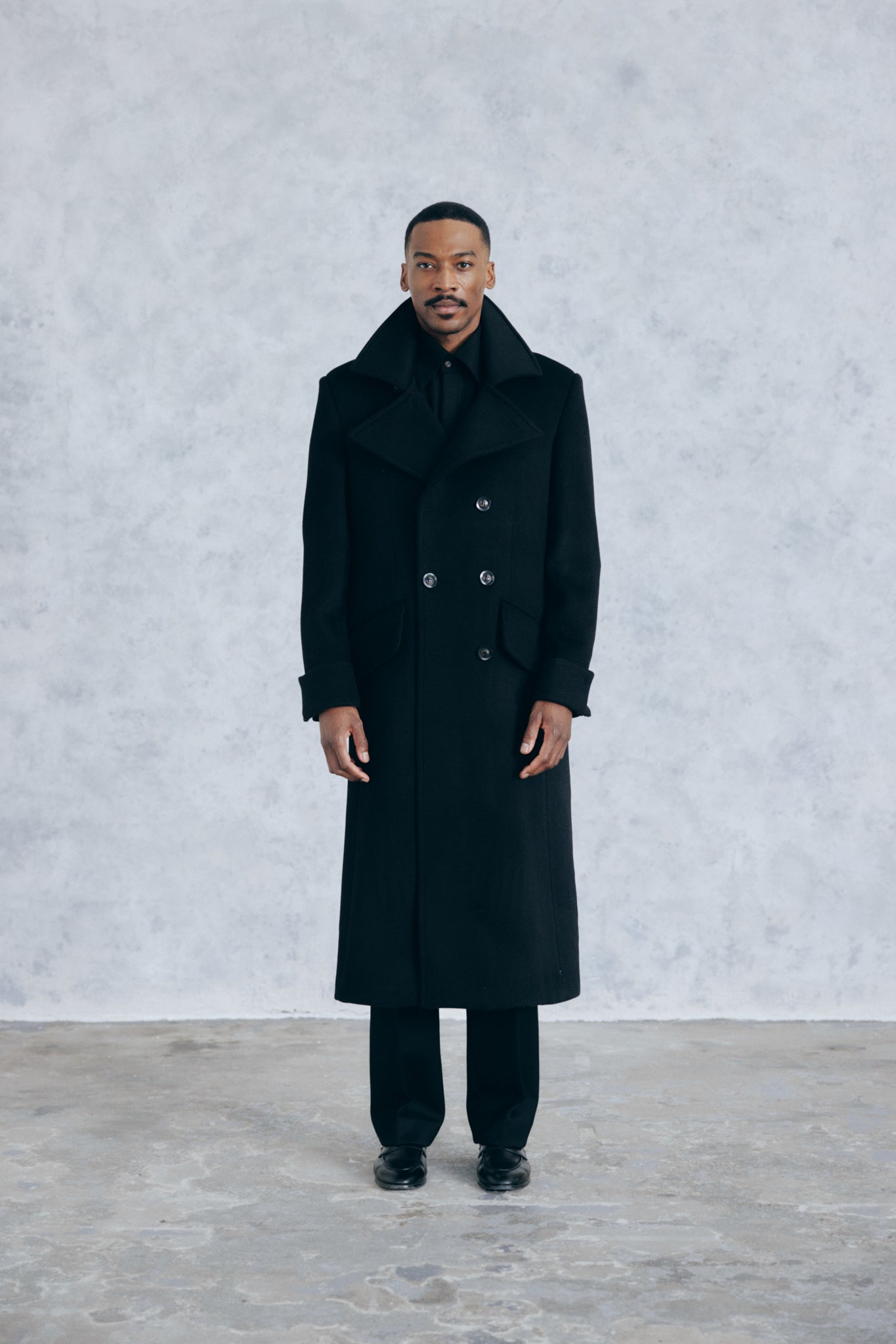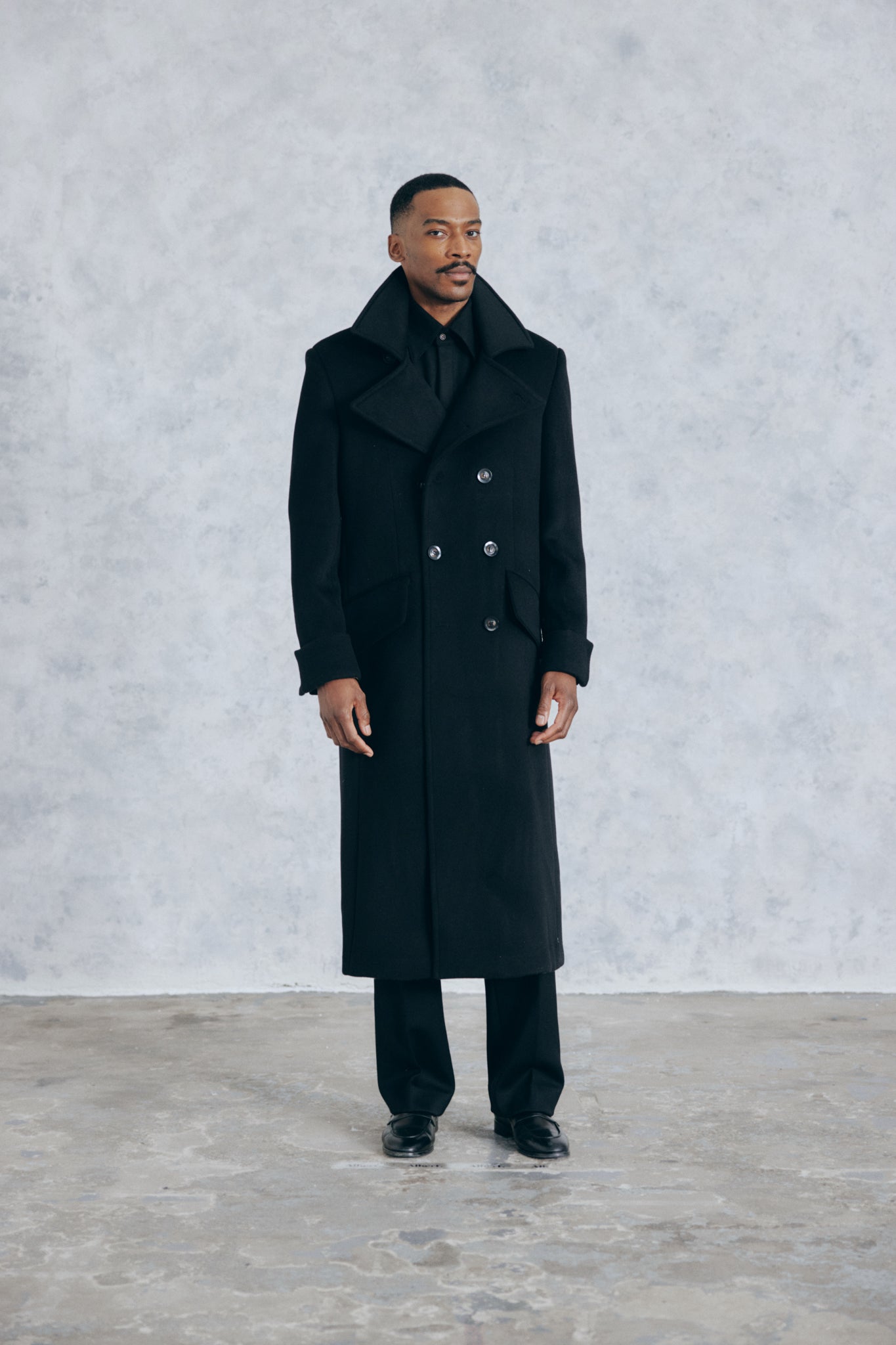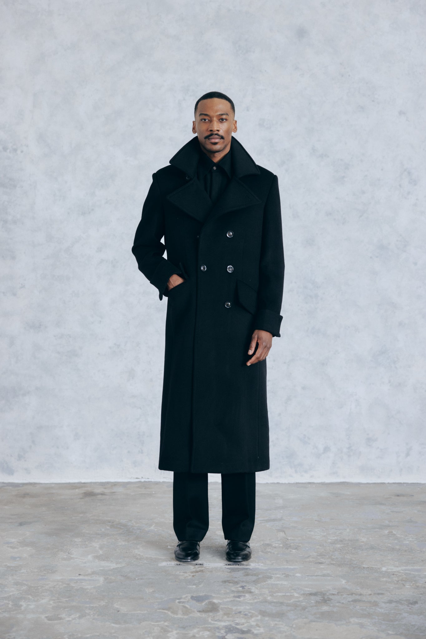 The Everest Greatcoat is a military inspired coat. Created in a thick heavy-duty Black 100% pure wool cloth this coat is packed with amazing details. Not only does it serve the purpose of keeping you warm it is a uniquely stylish winter coat and a great staple for the modern mans wardrobe.