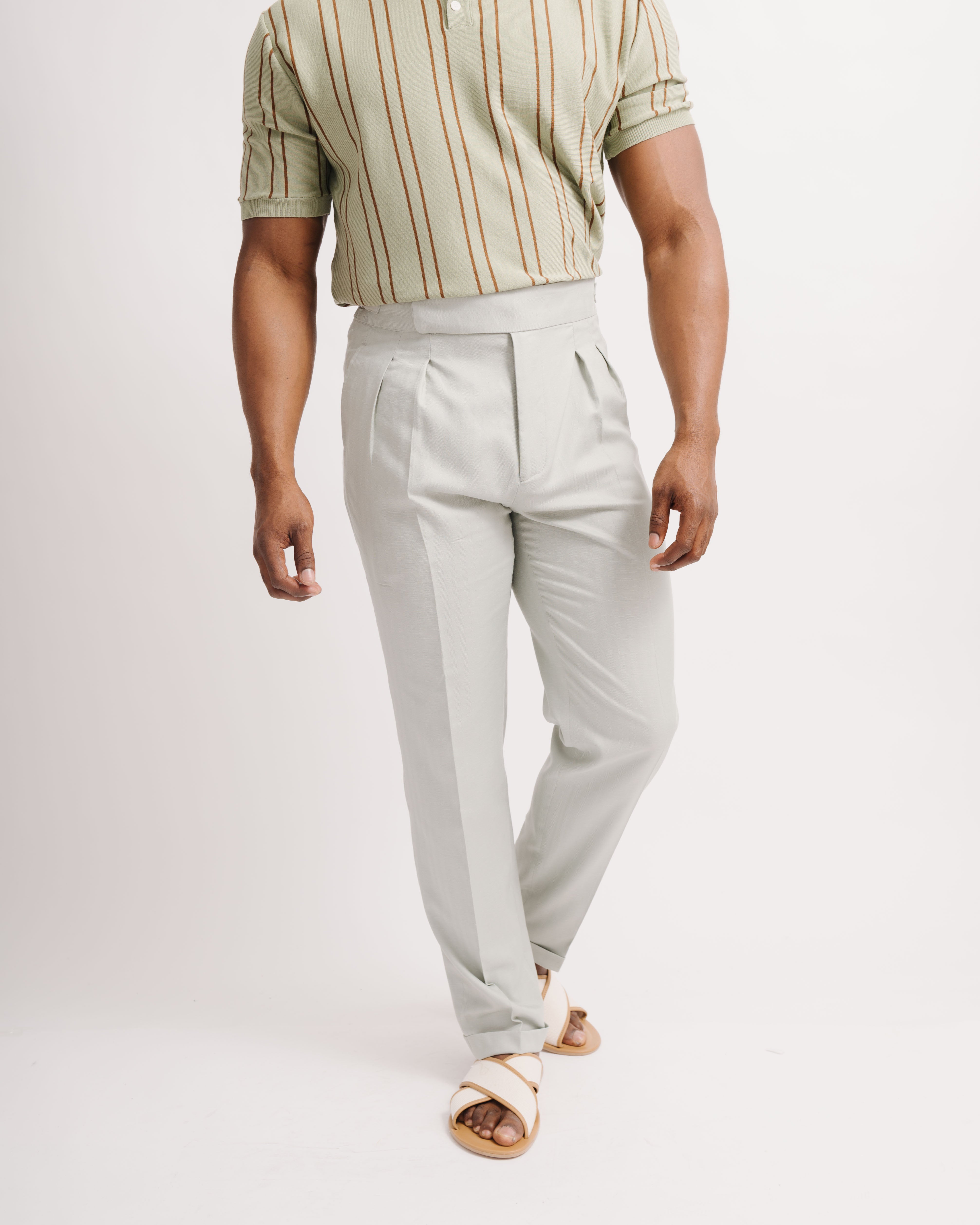 The Mayfair Pants in are an essential for any fashion forward mans wardrobe. Made from a Tea green Linen, these pants give you the best of both worlds of street style & sartorial. Can be dressed up with a well tailored matching blazer & shirt or dressed down with a T-shirt.