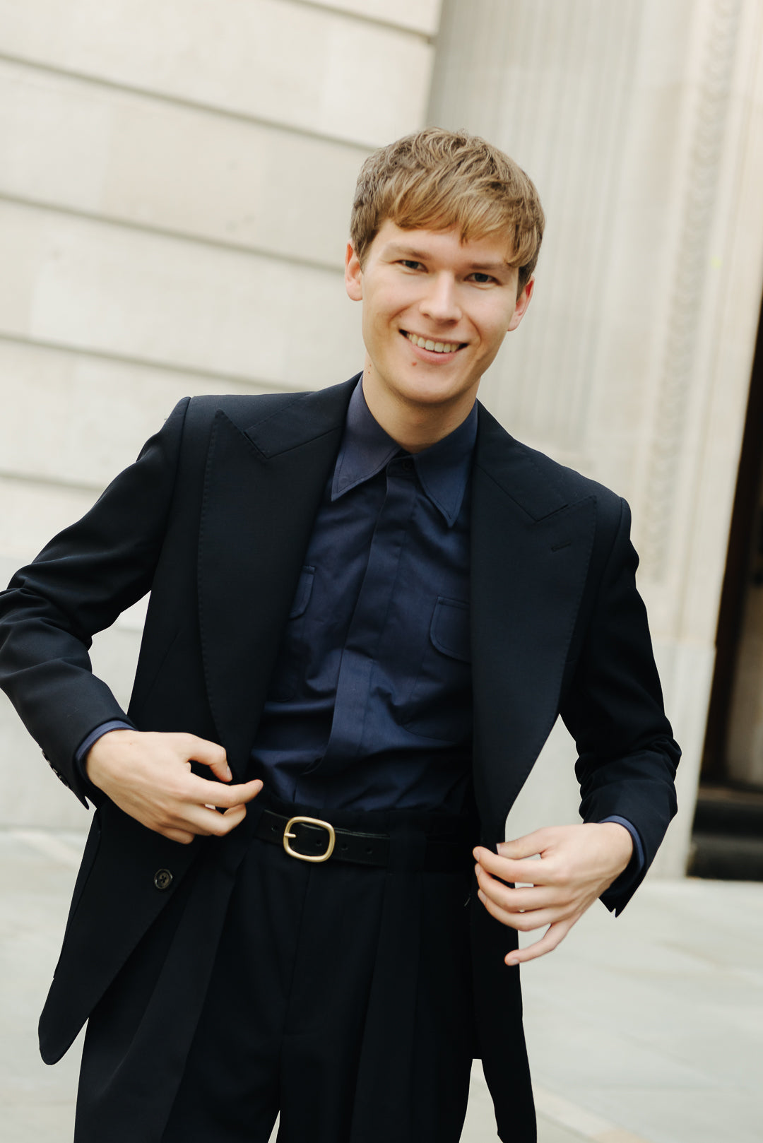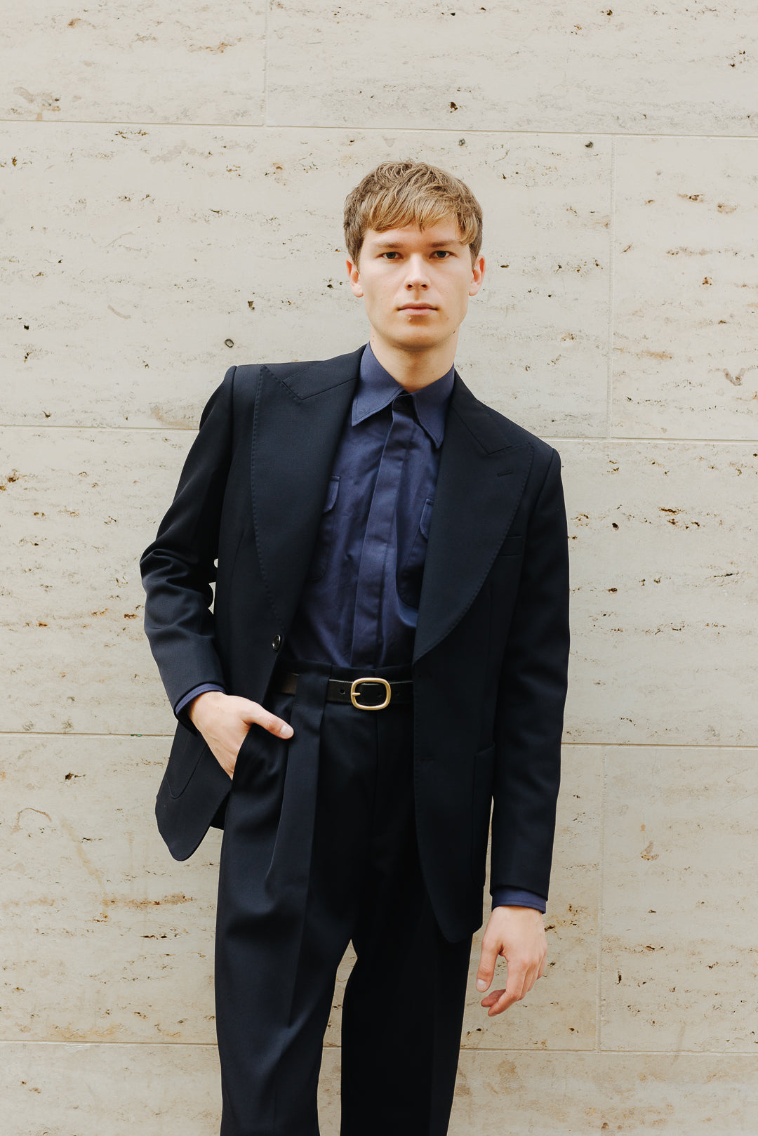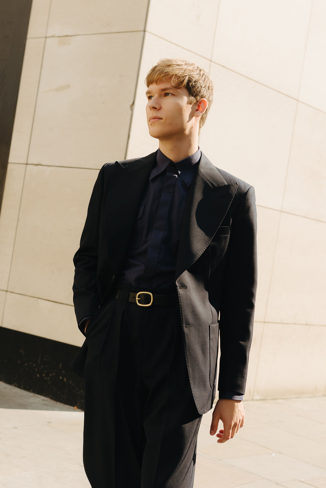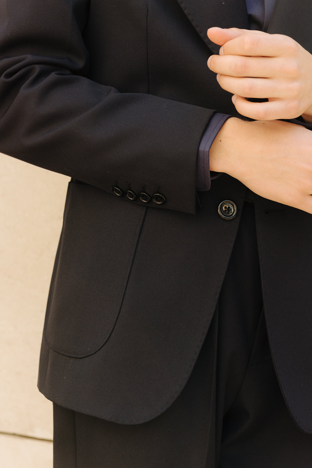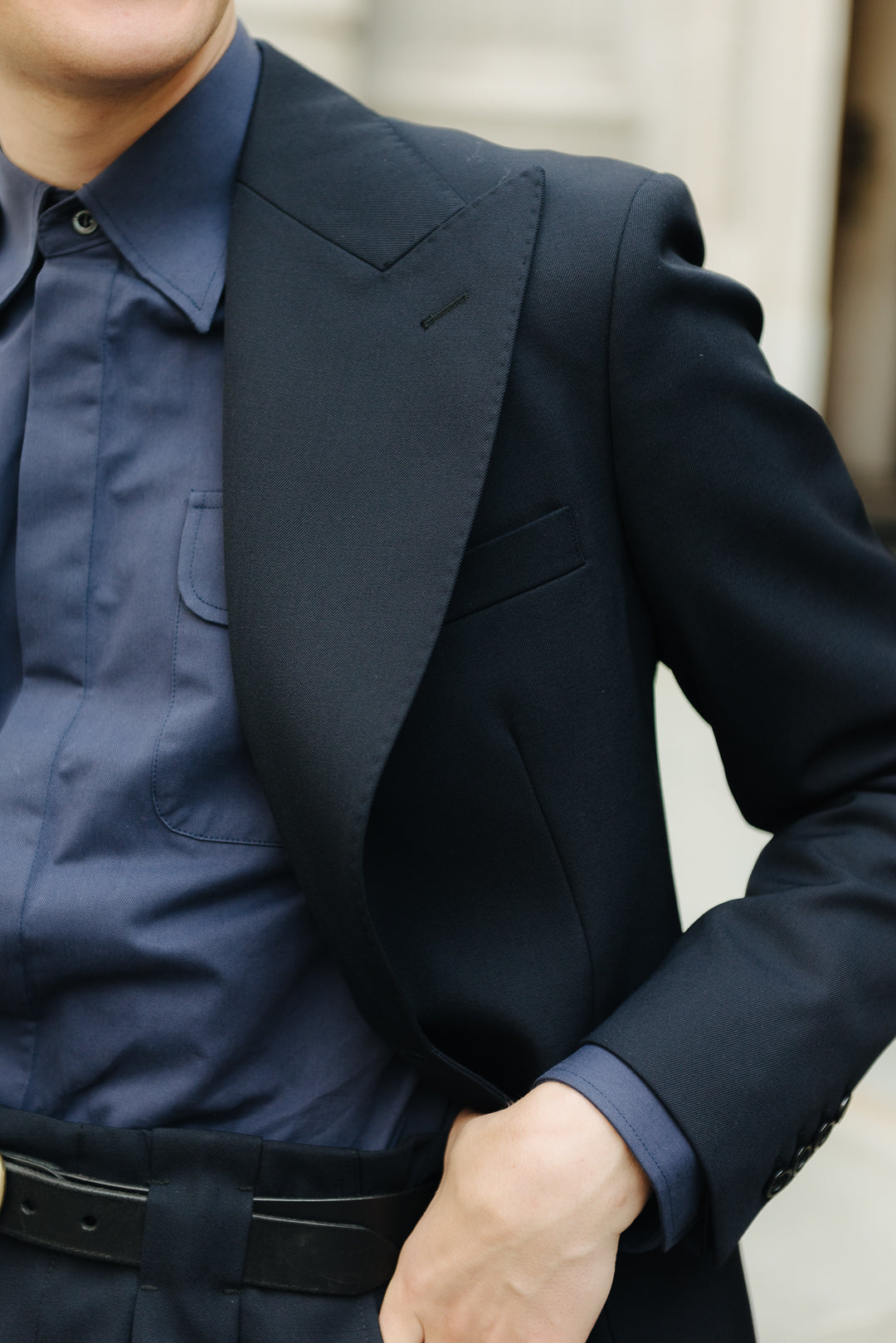 The Portobello Blazer is a standout item made for the fashion forward man. This tailored blazer is highly inspired by 1970's tailoring with its wide lapels and structured silhouette. The Portobello Blazer is made from a splendid navy wool cloth to execute a chic winter attire. Whether this blazer is worn for a formal or casual occasion it will certainly turn heads.