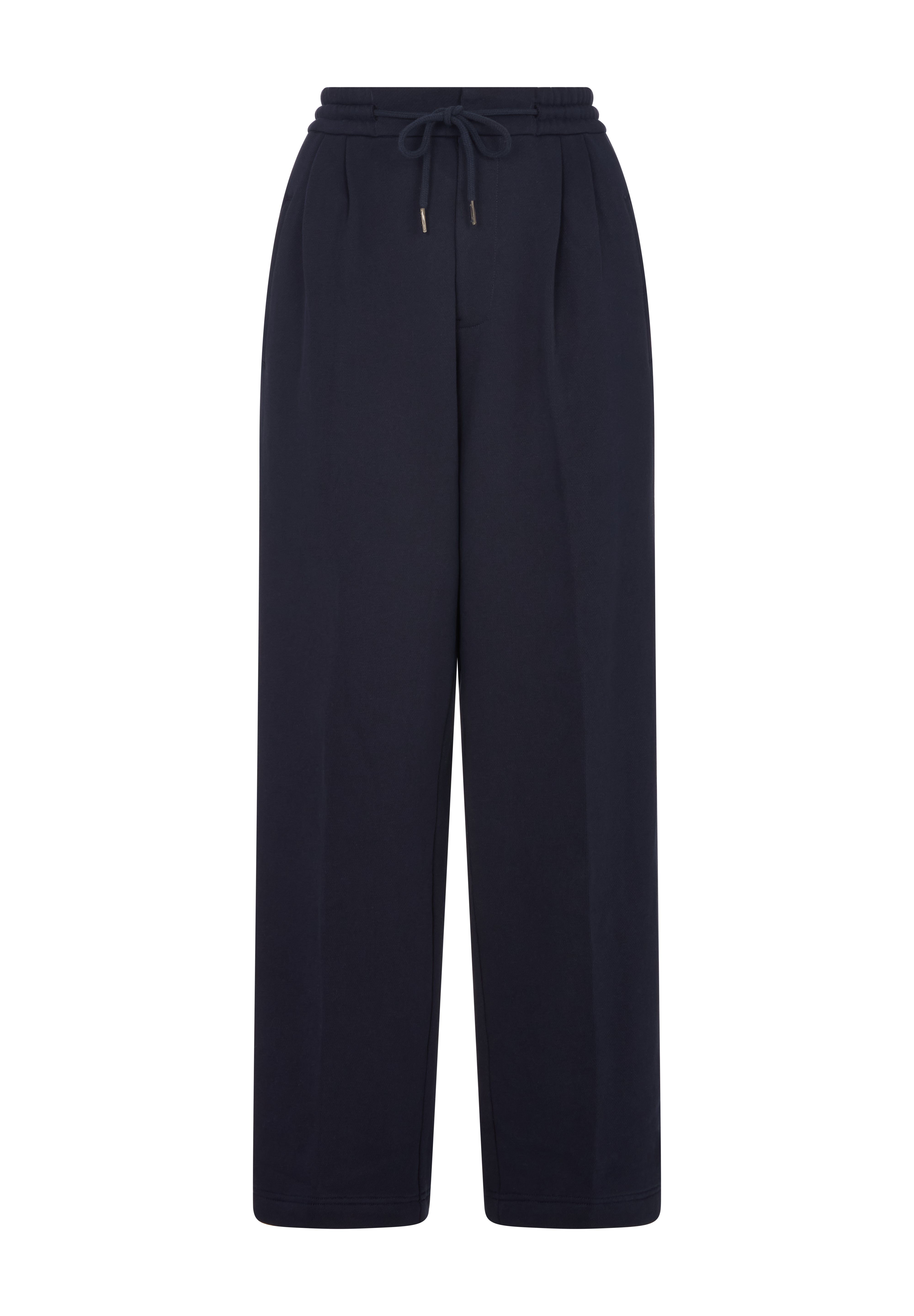 Crafted with a front fastening zip and an adjustable drawstring waist, the trousers offer both functionality and ease, adapting seamlessly to the wearer’s form. The fluid lines and soft movement of the fabric evoke a timeless sense of casual sophistication.