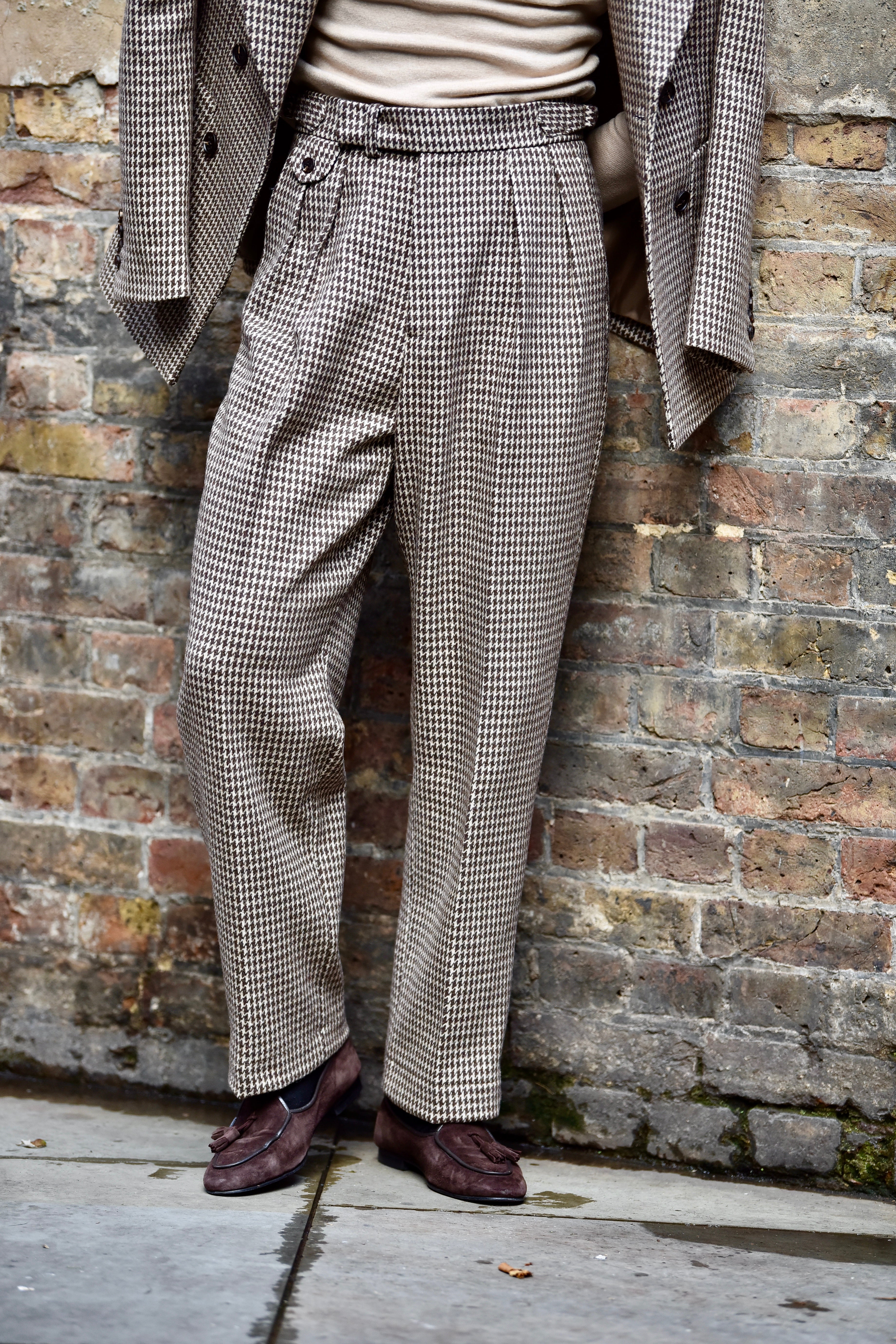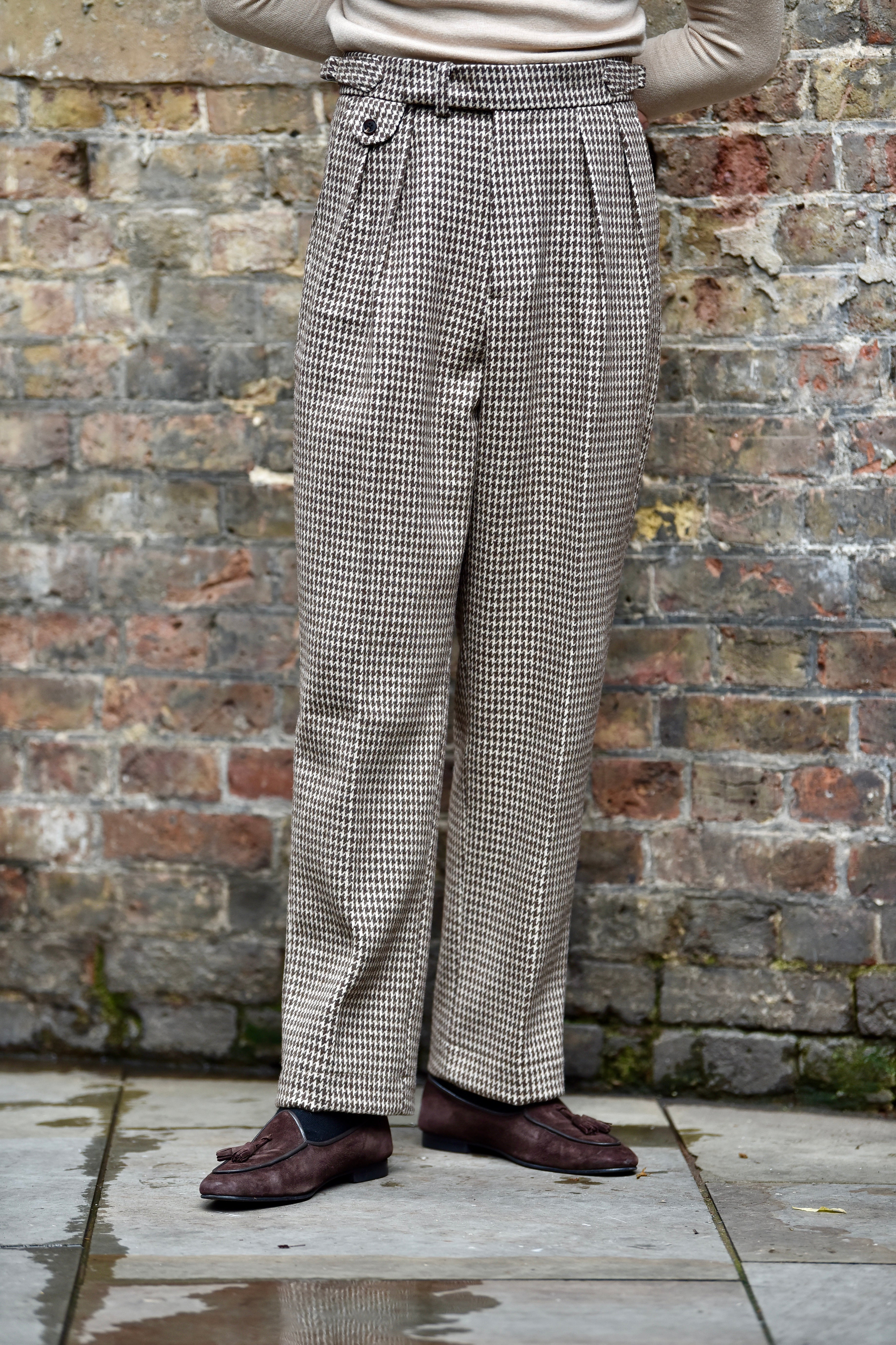 Introducing Our Walton Pants crafted from a classic brown houndstooth wool cloth, this timeless piece brings together traditional style and modern design. Made for a more relaxed, wide fit, the Walton Pants offer exceptional comfort without compromising on sophistication. Whether you're dressing them up for a sharp, sophisticated look or pairing them with sneakers for a casual, laid-back vibe, these pants are the ultimate statement piece for any modern man's wardrobe. With their versatile style and comfortable fit, the Walton Pants are a must-have for effortlessly blending classic elegance with everyday wearability.